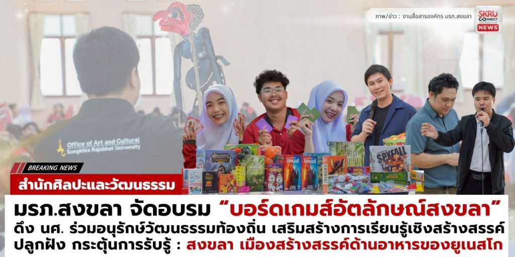 สำนักศิลปะฯ มรภ.สงขลา จัดอบรม “บอร์ดเกมส์อัตลักษณ์สงขลา” ปลุกพลังเยาวชนร่วมอนุรักษ์วัฒนธรรมท้องถิ่น เสริมสร้างการเรียนรู้เชิงสร้างสรรค์
