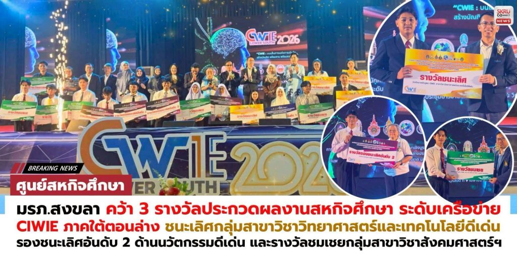 มรภ.สงขลา สุดปลื้ม คว้า 3 รางวัลประกวดผลงานสหกิจศึกษา ระดับเครือข่าย CIWIE ภาคใต้ตอนล่าง