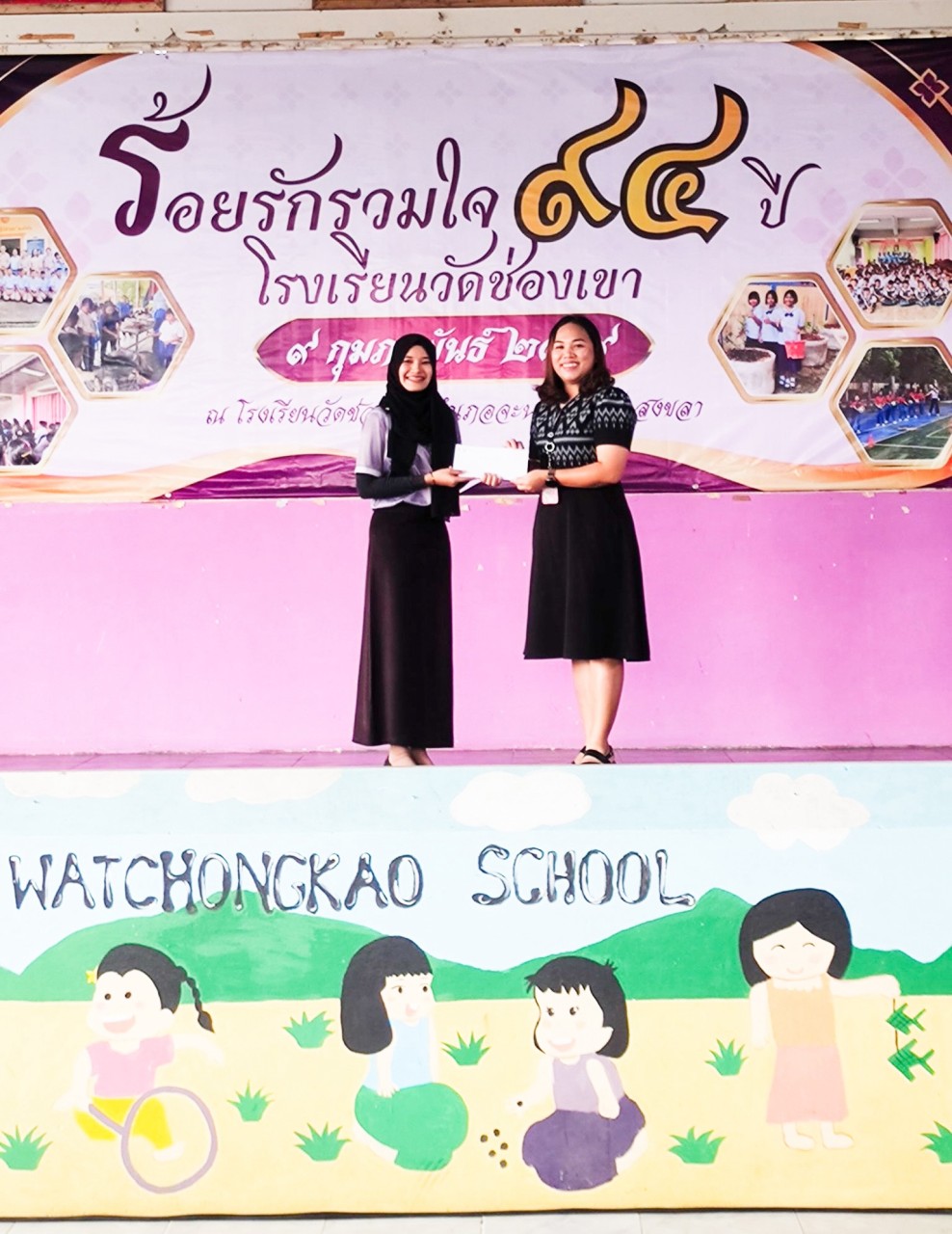 วันที่ 9 กุมภาพันธ์ 2569 นางสาวเกตุวลี สามสี พนักงานวิชาชีพระดับ 6 แผนกประชาสัมพันธ์และชุมชนสัมพันธ์โรงไฟฟ้าจะนะ พร้อมด้วยผู้ปฏิบัติงานโรงไฟฟ้าจะนะ ร่วมกิจกรรมร้อยรักรวมใจ 94 ปี โรงเรียนวัดช่อง ตำบลคลองเปียะ อำเภอจะนะ จังหวัดสงขลา โดยมีนายนิคม สีนุ้ย กำนันตำบลคลองเปียะเป็นประธานในกิจกรรมครั้งนี้