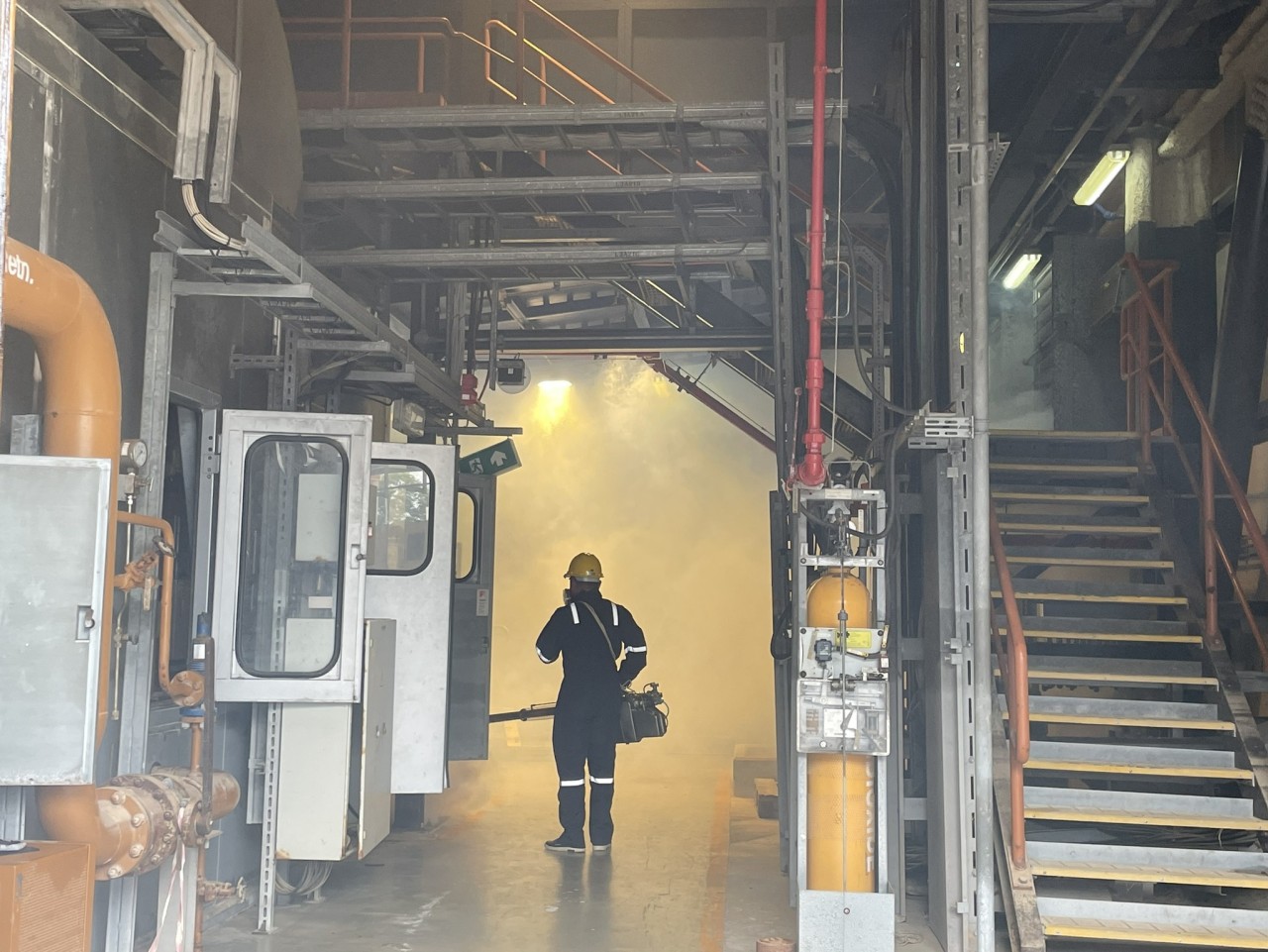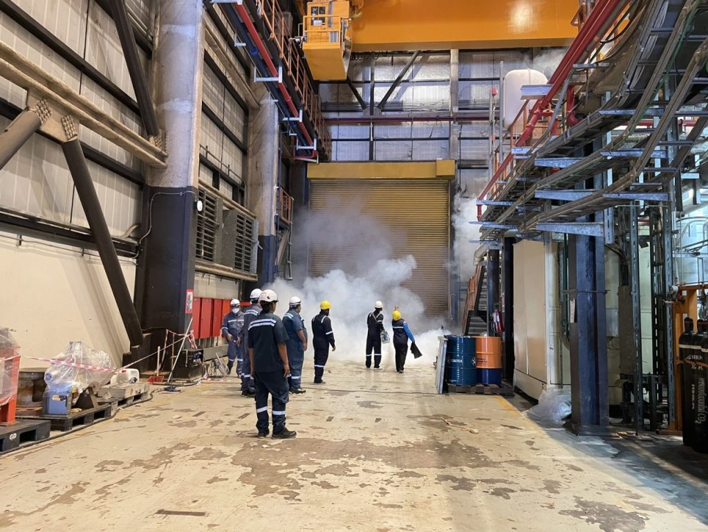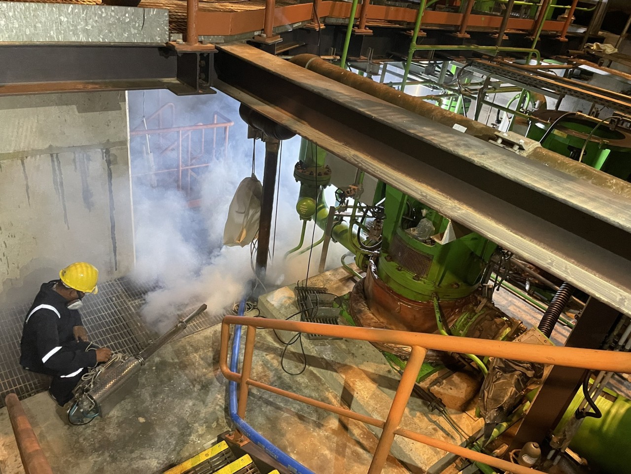 กฟผ.โรงไฟฟ้าจะนะ ได้รับการสนับสนุนจากสำนักงานสาธารณสุขอำเภอจะนะ ฉีดพ่นหมอกควันกำจัดยุงลาย เพื่อป้องกันโรคไวรัสซิกา ณ อาคารผลิตไฟฟ้าชุดที่ 1 – 2