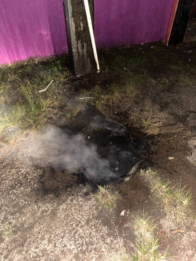 จุดที่ 3 เผาทำลายกล้องวงจรปิด บริเวณซอยวัดใจ หมู่ที่ 4 บ้านปูลากาซิง ตำบลกอลำ อำเภอยะรัง กล้องวงจรปิด ถูกเผาทำลาย จำนวน 2 ตัว