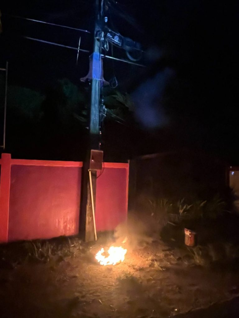 จุดที่ 2 เผาทำลายกล้องวงจรปิด บริเวณหมู่ที่ 4 บ้านต้นมะขาม ตำบลเมาะมาวี อำเภอยะรัง กล้องวงจรปิดถูกเผาทำลาย จำนวน 2 ตัว