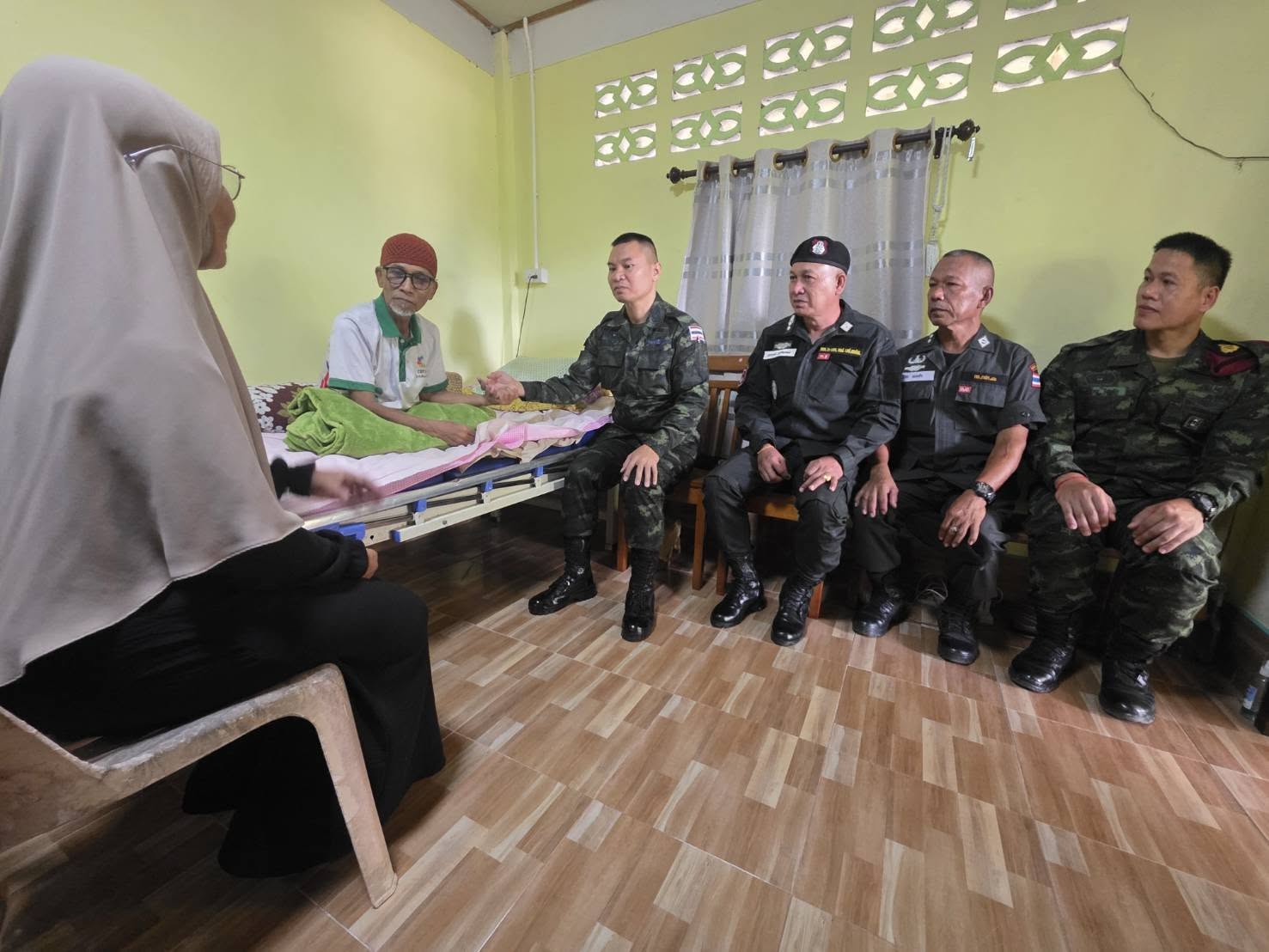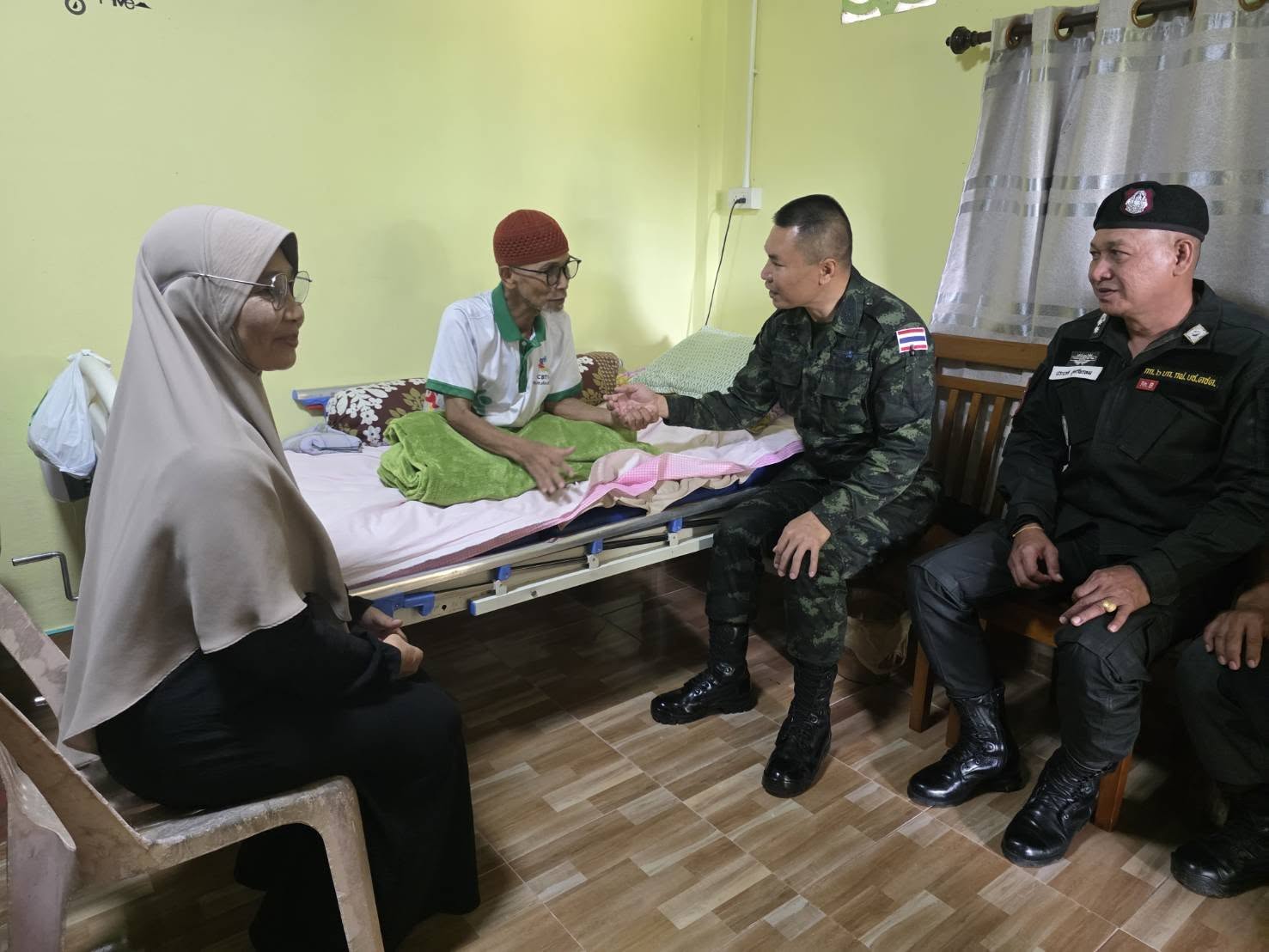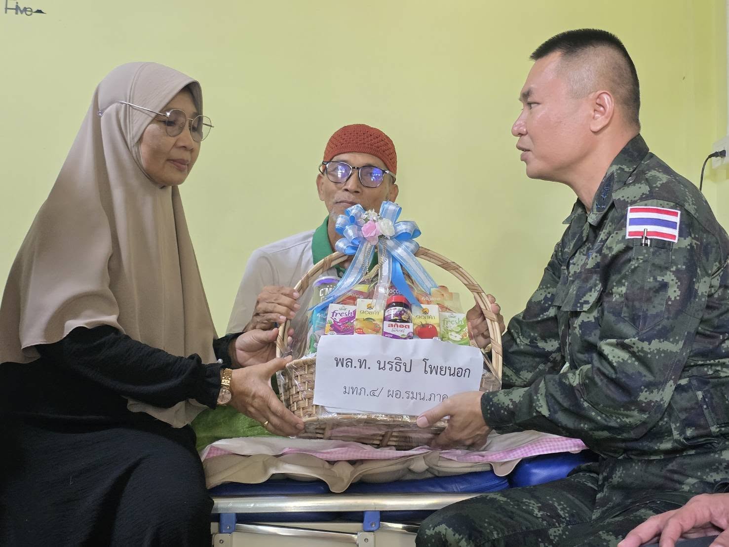 วันที่ 21 ตุลาคม 2568 เวลา 10.30 น. พันเอก เกียรติศักดิ์ ณีวงษ์ ผู้อำนวยการสำนักมวลชนและกิจการพิเศษ กองอำนวยการรักษาความมั่นคงภายในภาค 4 ส่วนหน้า ร่วมกับ หน่วยเฉพาะกิจตำรวจตระเวนชายแดนที่ 43, ชุดควบคุมที่ 955 และชุดคุ้มครองตำบลนาทวี อำเภอนาทวี จังหวัดสงขลา ได้นำความห่วงใย จาก พลโท นรธิป โพยนอก แม่ทัพภาคที่ 4 / ผู้อำนวยการรักษาความมั่นคงภายในภาค 4 เข้าเยี่ยมให้กำลังใจ นายเจ๊ะอุเส็น โต๊ะสา ประธานองค์กรภาคประชาชนเพื่อสันติและเศรษฐกิจพอเพียง จังหวัดสงขลา ซึ่งป่วยด้วยโรคมะเร็ง บริเวณขั้วตับระยะลุกลาม แต่ยังคงเป็นกำลังสำคัญของเครือข่ายมวลชน กองอำนวยการรักษาความมั่นคงภายในภาค 4 ส่วนหน้า ที่ปฏิบัติหน้าที่ด้วยความเสียสละ วิริยะ อุตสาหะ สนับสนุนภารกิจของทางราชการอย่างต่อเนื่อง ณ บ้านเลขที่ 125 หมู่ที่ 3 ตำบลนาทวี อำเภอนาทวีจังหวัดสงขลา