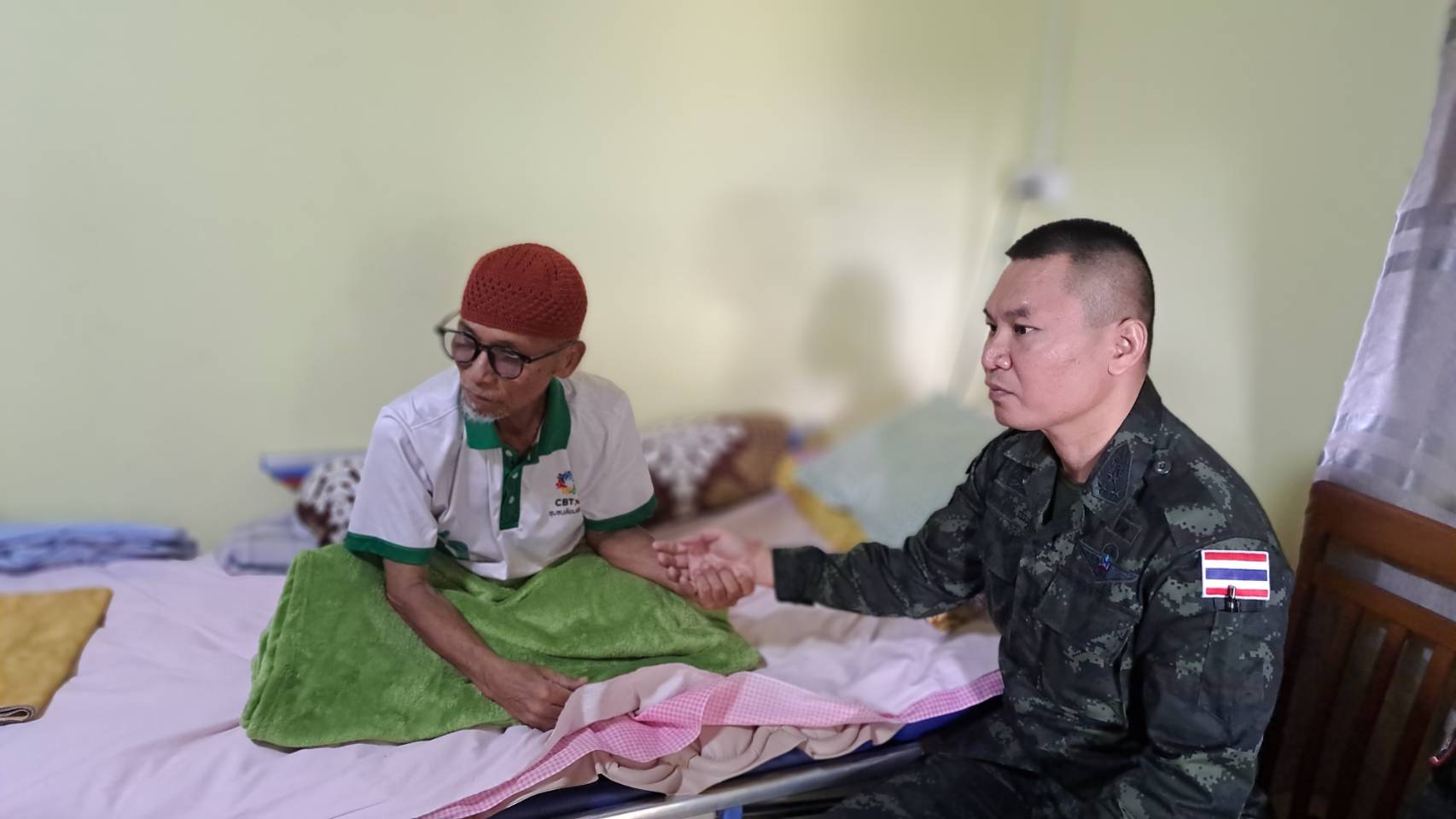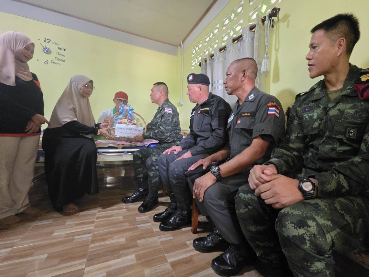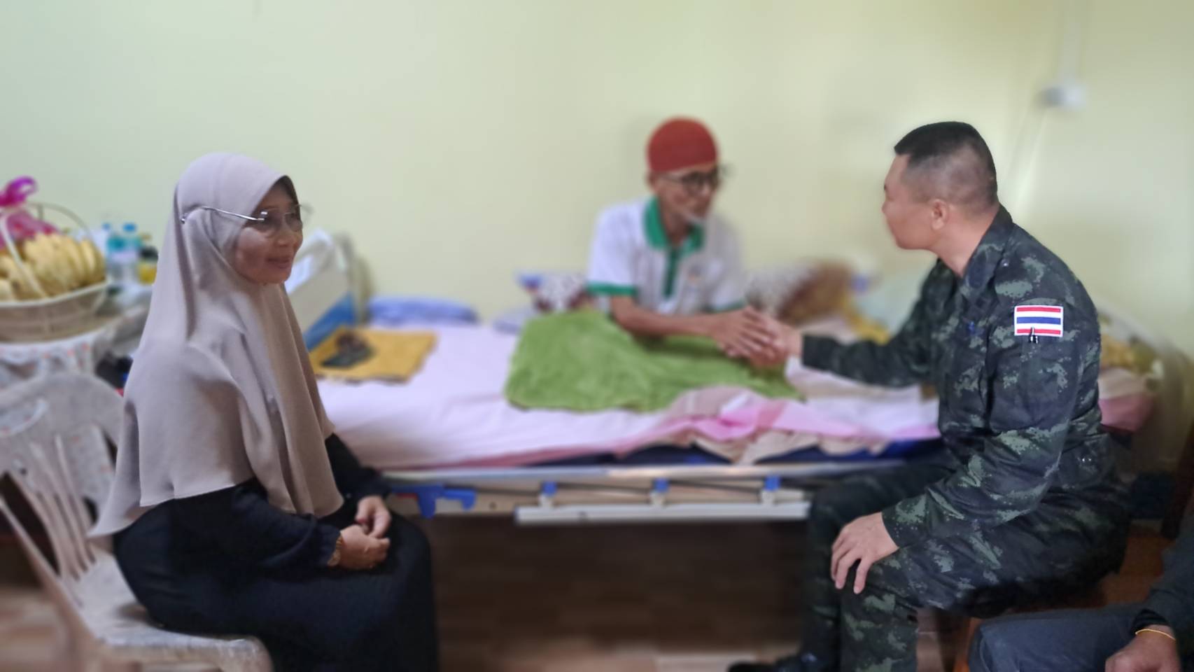 วันที่ 21 ตุลาคม 2568 เวลา 10.30 น. พันเอก เกียรติศักดิ์ ณีวงษ์ ผู้อำนวยการสำนักมวลชนและกิจการพิเศษ กองอำนวยการรักษาความมั่นคงภายในภาค 4 ส่วนหน้า ร่วมกับ หน่วยเฉพาะกิจตำรวจตระเวนชายแดนที่ 43, ชุดควบคุมที่ 955 และชุดคุ้มครองตำบลนาทวี อำเภอนาทวี จังหวัดสงขลา ได้นำความห่วงใย จาก พลโท นรธิป โพยนอก แม่ทัพภาคที่ 4 / ผู้อำนวยการรักษาความมั่นคงภายในภาค 4 เข้าเยี่ยมให้กำลังใจ นายเจ๊ะอุเส็น โต๊ะสา ประธานองค์กรภาคประชาชนเพื่อสันติและเศรษฐกิจพอเพียง จังหวัดสงขลา ซึ่งป่วยด้วยโรคมะเร็ง บริเวณขั้วตับระยะลุกลาม แต่ยังคงเป็นกำลังสำคัญของเครือข่ายมวลชน กองอำนวยการรักษาความมั่นคงภายในภาค 4 ส่วนหน้า ที่ปฏิบัติหน้าที่ด้วยความเสียสละ วิริยะ อุตสาหะ สนับสนุนภารกิจของทางราชการอย่างต่อเนื่อง ณ บ้านเลขที่ 125 หมู่ที่ 3 ตำบลนาทวี อำเภอนาทวีจังหวัดสงขลา