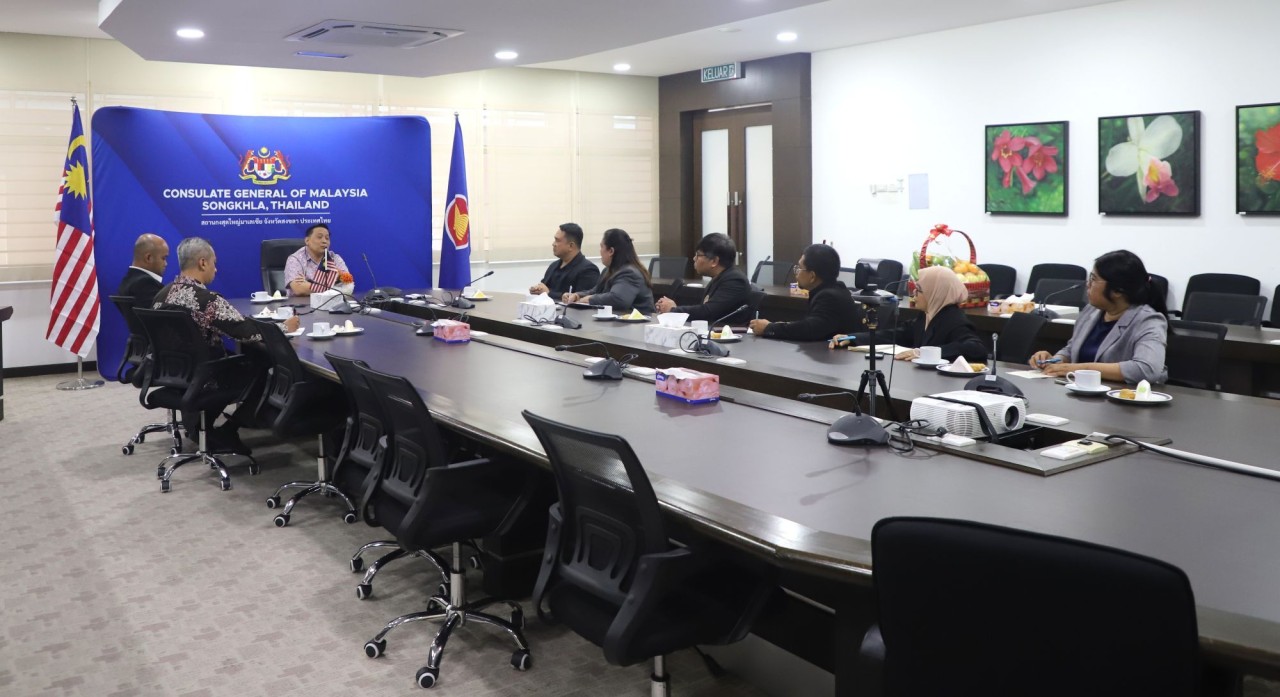 คณะมนุษยศาสตร์และสังคมศาสตร์ มรภ.สงขลา เข้าเยี่ยมคารวะกงสุลใหญ่แห่งมาเลเซีย ประจำจังหวัดสงขลา พร้อมหารือแนวทางความร่วมมือทางวิชาการ ครอบคลุมการพัฒนาหลักสูตร และการจัดกิจกรรมร่วมกันในระดับนานาชาติ โดยเฉพาะในบริบทของภูมิภาคอาเซียน ยกระดับคุณภาพการศึกษา เสริมสร้างเครือข่ายความร่วมมือระดับสากล