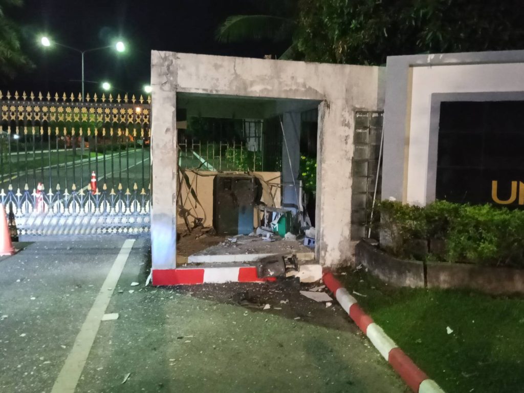 จากนั้นกลุ่มคนร้ายได้ก่อเหตุวางระเบิดตู้เอทีเอ็มของธนาคารอิสลามแห่งประเทศไทย ซึ่งตั้งอยู่ใกล้กับป้อม รปภ. จนเกิดเสียงระเบิดดังสนั่นในยามวิกาล สร้างความตกใจให้กับประชาชนในละแวกนั้น และสร้างความเสียหายแก่ทรัพย์สินของทางธนาคารและชุมชนโดยรอบ ก่อนจะหลบหนีขึ้นเนินเขาหลังมหาวิทยาลัย โดยจากการตรวจสอบเบื้องต้นคนร้ายไม่สามารถขโมยเงินออกจากตู้ ATM ไปได้