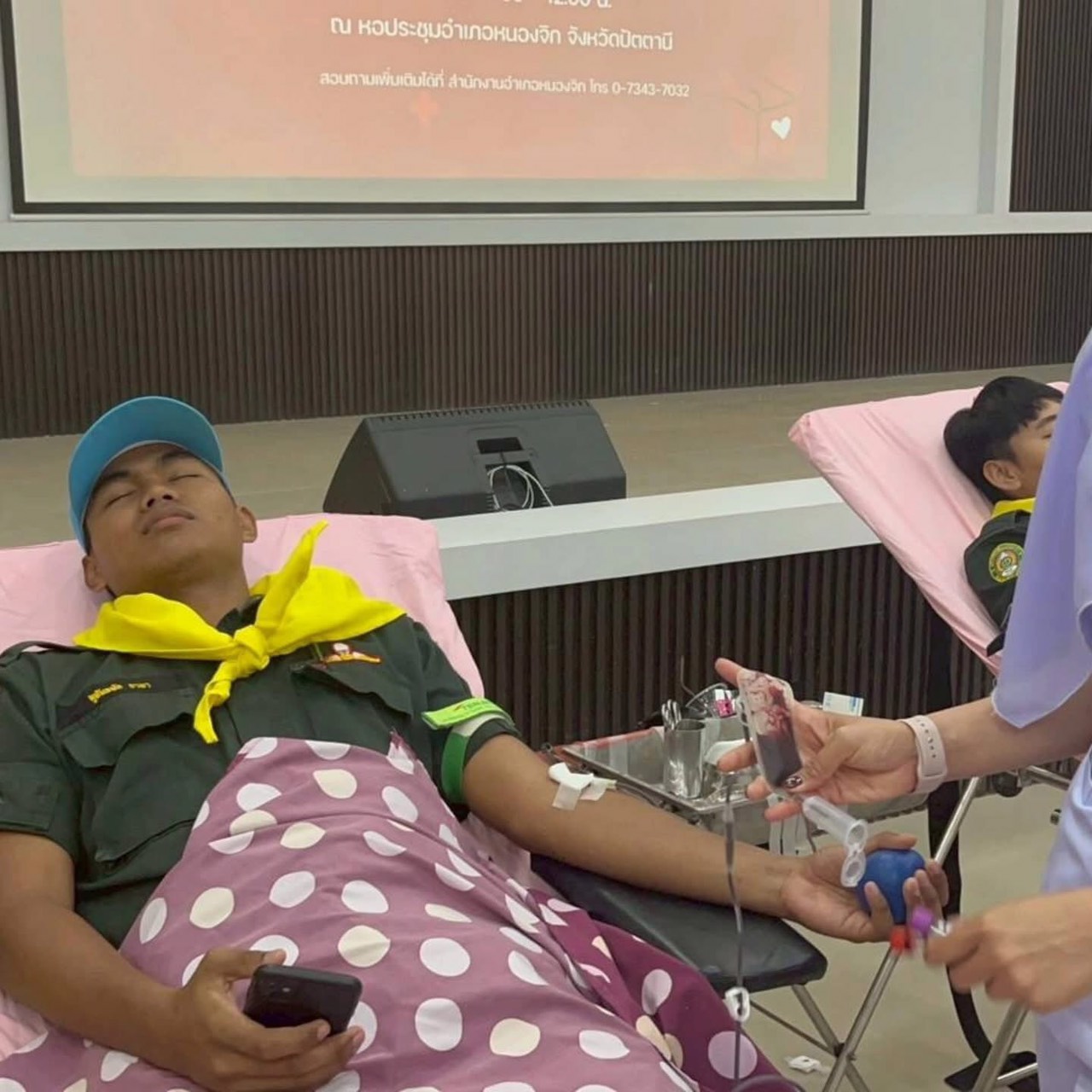 หน่วยฝึกนักศึกษาวิชาทหาร มณฑลทหารบกที่ 46 นำกำลังพลจิตอาสาพระราชทาน รด.จิตอาสา พร้อมด้วย นักศึกษาวิชาทหารจิตอาสาพระราชทาน 3 จังหวัดชายแดนภาคใต้ เข้าร่วมกิจกรรมบริจาคโลหิต เพื่อเฉลิมพระเกียรติพระบาทสมเด็จพระเจ้าอยู่หัว เนื่องในวันเฉลิมพระชนมพรรษา 28 กรกฎาคม 2568 มีจำนวน 42 นาย บริจาคโลหิตได้ 30 นาย รวมจำนวนโลหิต 10,500 ซีซี ณ อาคารอเนกประสงค์ ที่ว่าการอำเภอหนองจิก จังหวัดปัตตานี
