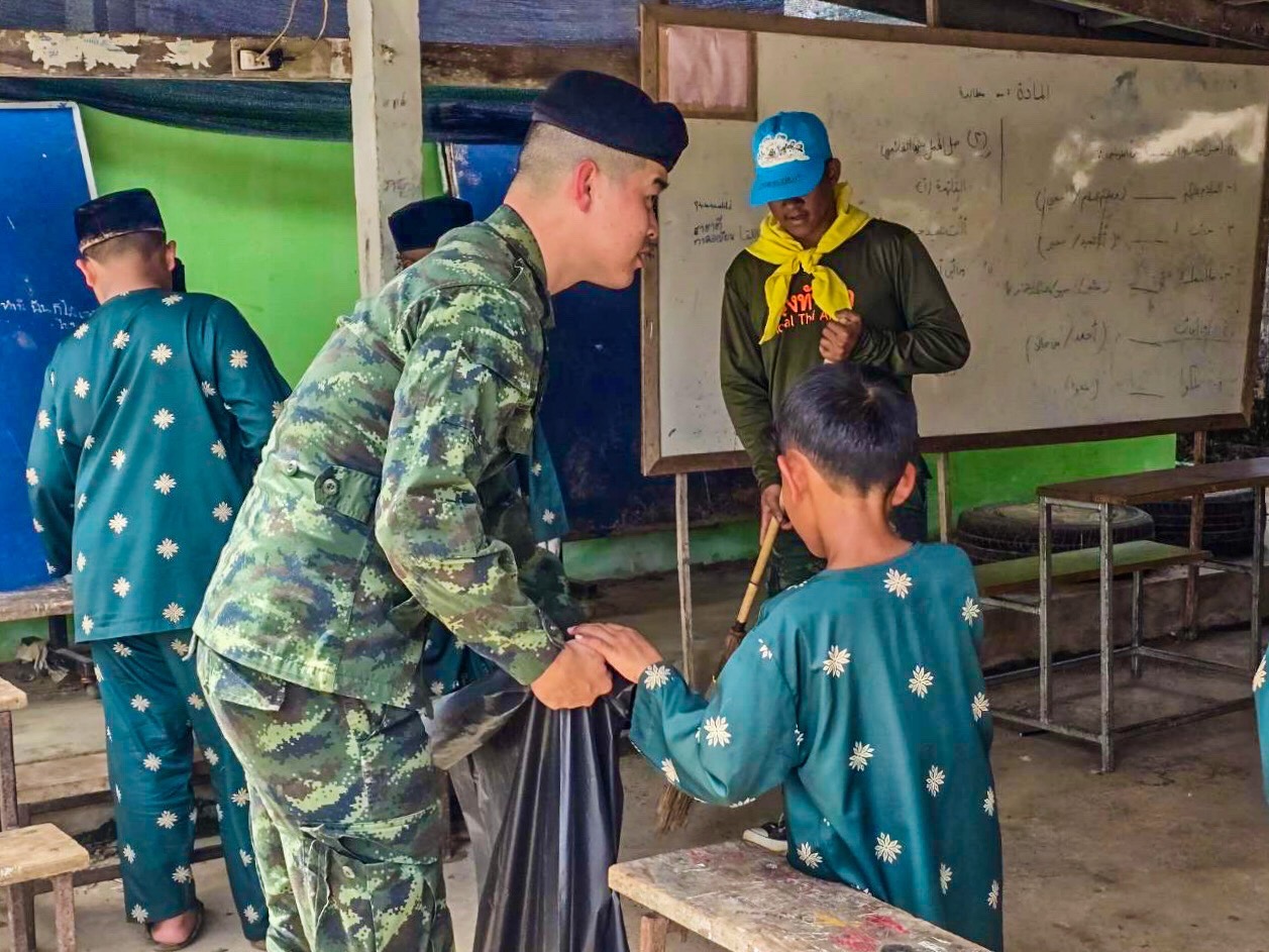 วันที่ 6 กันยายน 2568 หน่วยเฉพาะกิจ กองพันทหารราบที่ 1 (ฉก.พัน.ร.ที่ 1) จัดกำลังพลจากกองร้อยหน่วยขึ้นตรง ลงพื้นที่ร่วมกับ ผู้นำชุมชน และประชาชนบ้านบือซู หมู่ที่ 6 ตำบลบันนังสตา อำเภอบันนังสตา จังหวัดยะลา ร่วมกันทำกิจกรรม “บำเพ็ญสาธารณประโยชน์” ภายใน มัสยิดคอสุลอีบาดะห์