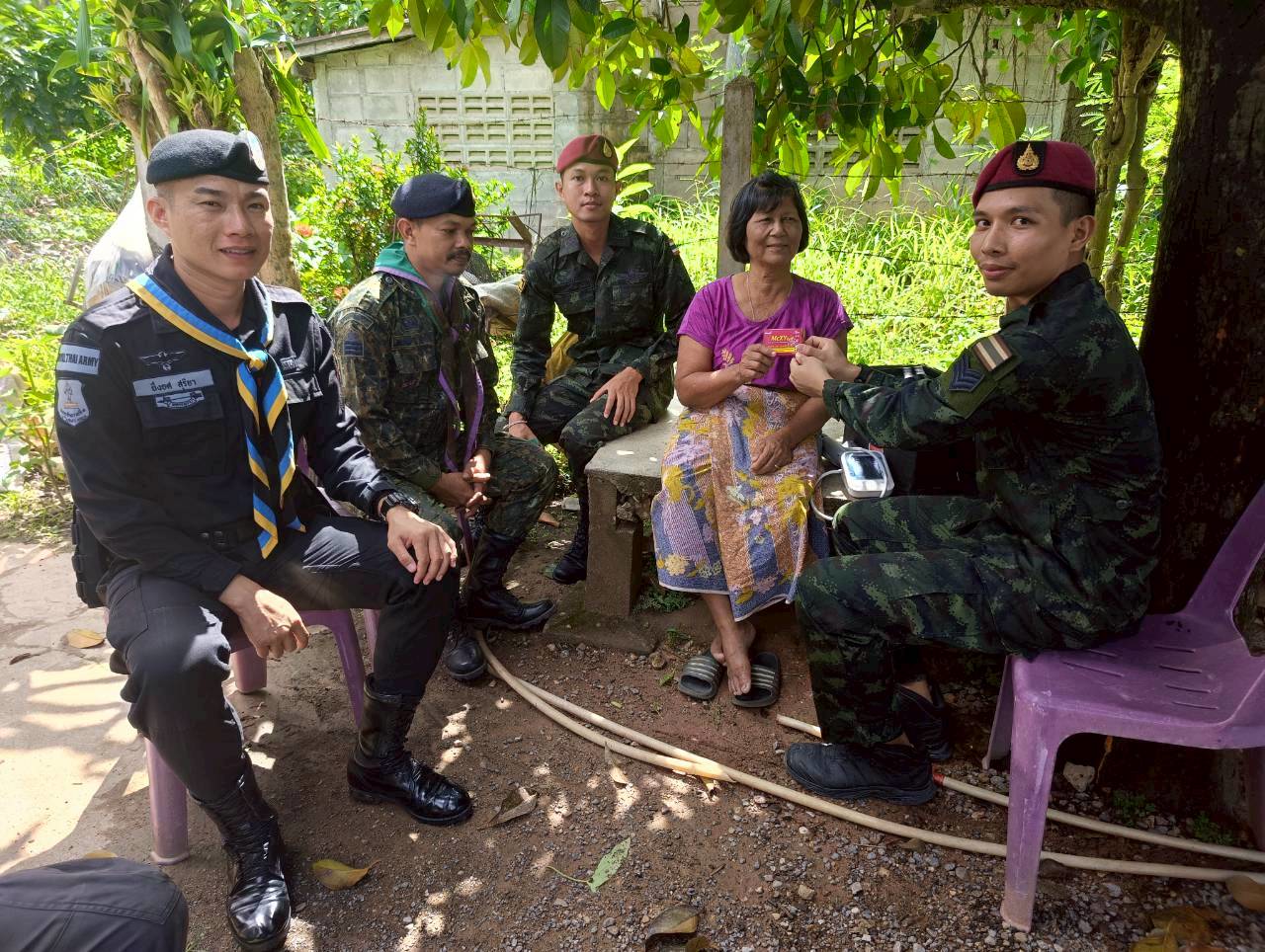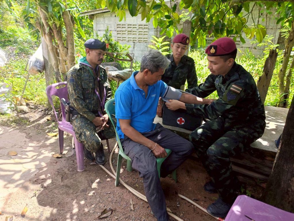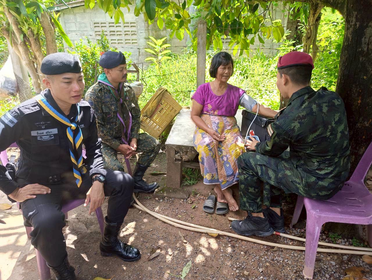 หน่วยเฉพาะกิจสันติสุข จัดกำลังพลจาก ชุดสันติสุขที่ 301 ร่วมกับ ชุดทักษิณสัมพันธ์ที่ 332, สมาชิกกองอาสารักษาดินแดนชุดคุ้มครองตำบลตลิ่งชัน, เจ้าหน้าที่ทหารพรานจาก กองร้อยทหารพรานที่ 3302 หน่วยเฉพาะกิจกรมทหารพรานที่ 33 และ อาสาสมัครสาธารณสุขประจำหมู่บ้านบ้านตะบิงติงงี ผนึกกำลังจัดกิจกรรม “หมอเดินเท้าเข้าชุมชน” เพื่อนำบริการด้านสุขภาพเข้าถึงประชาชนอย่างทั่วถึงในพื้นที่ บ้านตะบิงติงงี ตำบลตลิ่งชัน อำเภอบันนังสตา จังหวัดยะลา โดยเจ้าหน้าที่ได้ออกเยี่ยมเยียนประชาชนถึงในชุมชน ตรวจวัดความดันโลหิตและชีพจร รวมถึงให้คำปรึกษาด้านสุขภาพอย่างใกล้ชิด พร้อมมอบเวชภัณฑ์สามัญประจำบ้าน เพื่อส่งเสริมการดูแลตนเองเบื้องต้นภายในครัวเรือน