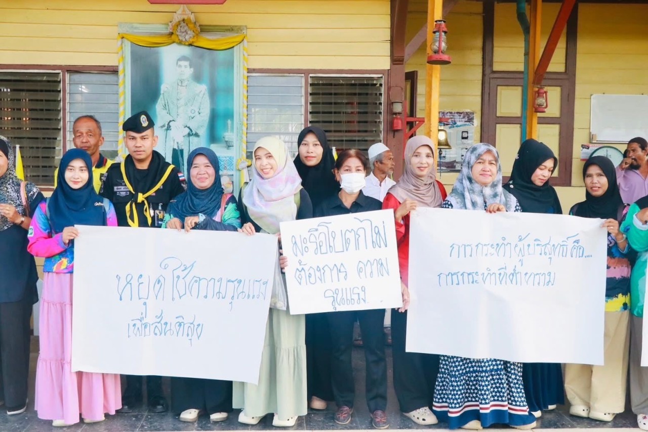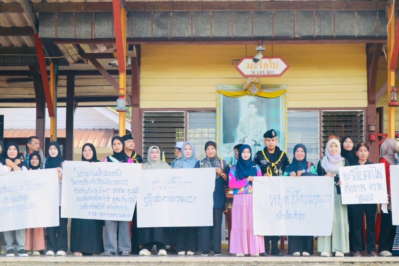 วันที่ 4 พฤศจิกายน 2568 เวลา 07.00 น. พันโท ไธพัตย์ สุนทรวิภาต รองผู้บังคับหน่วยเฉพาะกิจกรมทหารพรานที่ 45 ร่วมกับส่วนราชการ 3 ฝ่ายอำเภอระแงะ และพี่น้องประชาชนในพื้นที่ตำบลมะรือโบตก ร่วมประกอบพิธีละหมาดฮายัตและร่วมกิจกรรม “ปฏิเสธความรุนแรง” เพื่อแสดงเจตนารมณ์ในการต่อต้านการใช้ความรุนแรงทุกรูปแบบ