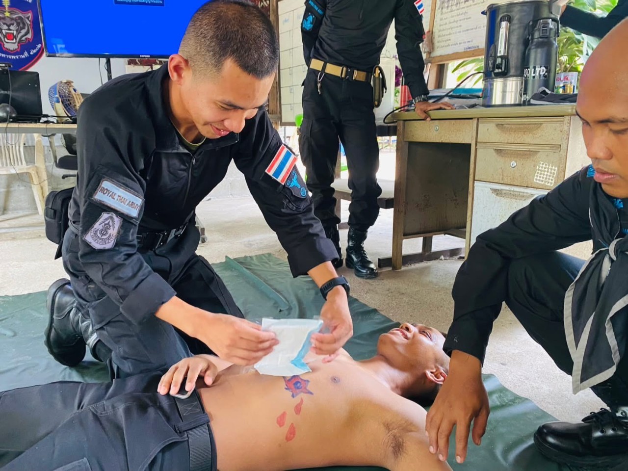 การฝึกอบรมในครั้งนี้ มุ่งเน้นให้เจ้าหน้าที่ทุกนายมีความเข้าใจในขั้นตอนการช่วยชีวิตภายใต้สภาวะการรบ สามารถประเมินอาการผู้บาดเจ็บ การหยุดเลือด การทำ CPR การลำเลียงผู้บาดเจ็บออกจากพื้นที่อันตรายได้อย่างถูกวิธีและปลอดภัย ตลอดจนเสริมสร้างความมั่นใจและความพร้อมในการปฏิบัติภารกิจในทุกสถานการณ์