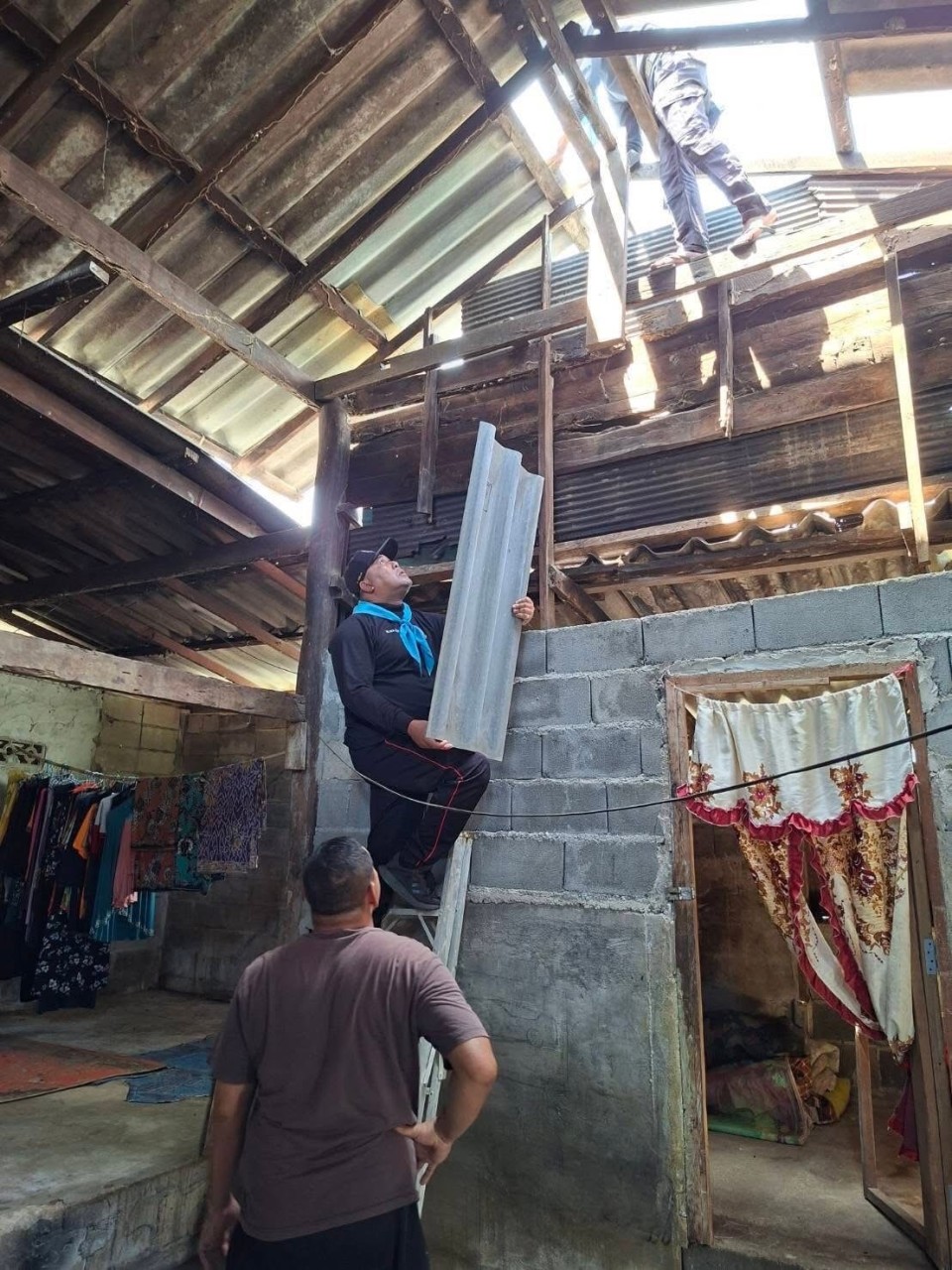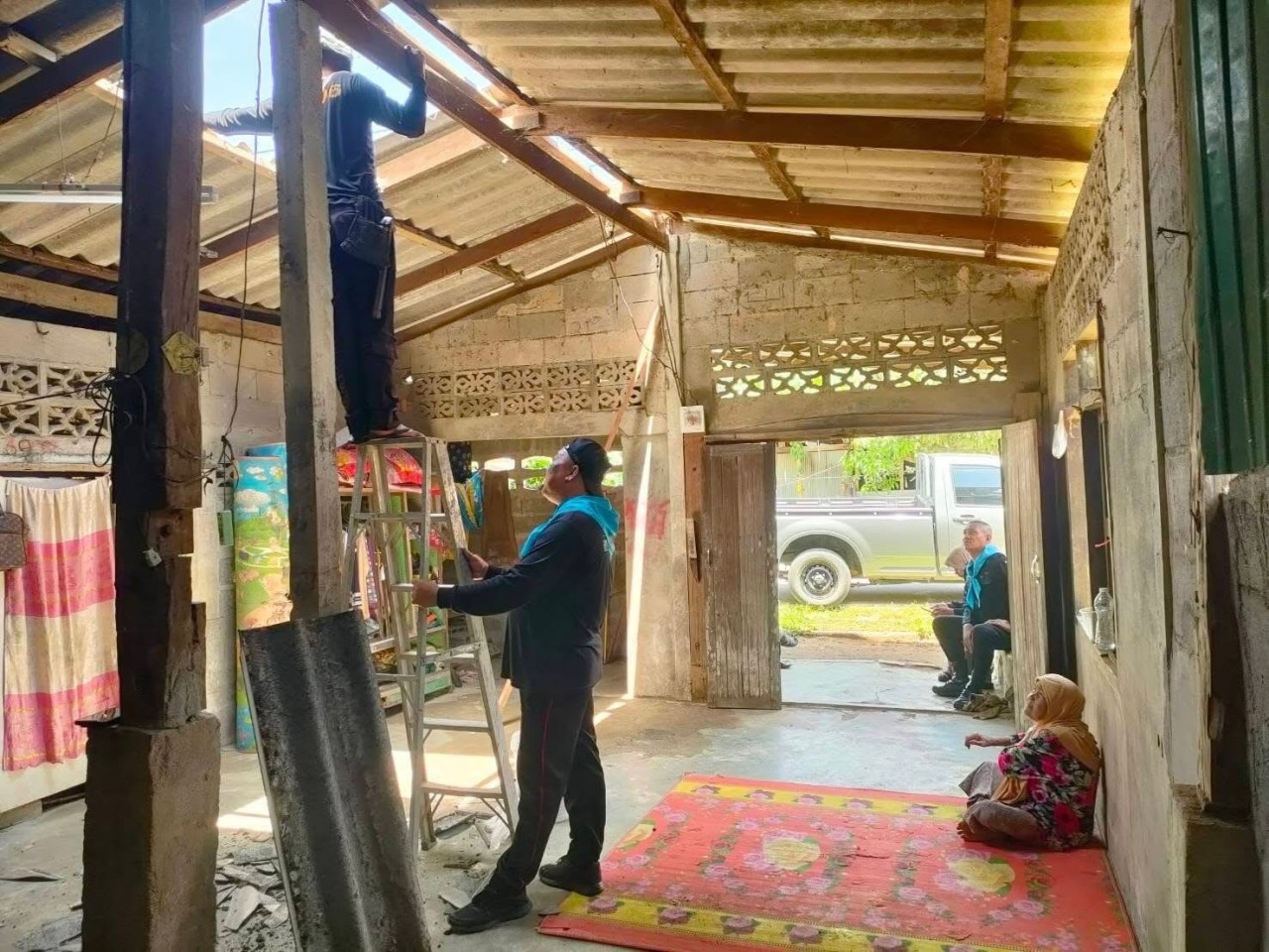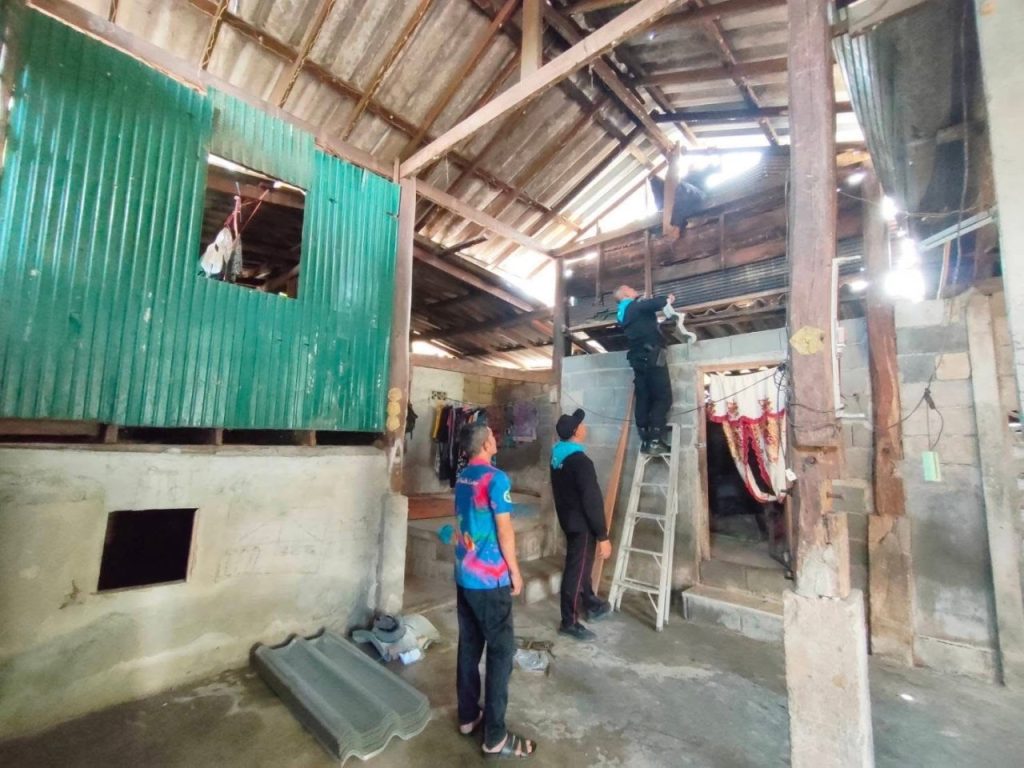 เมื่อวันที่ 13 ตุลาคม 2568 ที่ผ่านมา กองร้อยทหารพรานที่ 4506 หน่วยเฉพาะกิจกรมทหารพรานที่ 45 พร้อมกำลังพลชุดปฏิบัติการกิจการพลเรือนของหน่วย ลงพื้นที่ร่วมกับประธานญาลันนันบารู ,ผู้นำหมู่บ้าน และพี่น้องประชาชนในพื้นที่ หมู่ที่ 1 บ้านบูเก๊ะปือเร๊าะห์ ตำบลมะรือโบตก อำเภอระแงะ จังหวัดนราธิวาส ดำเนินการซ่อมแซมและเปลี่ยนกระเบื้องหลังคาบ้านให้กับประชาชนที่ได้รับความเสียหายจากภัยธรรมชาติ
