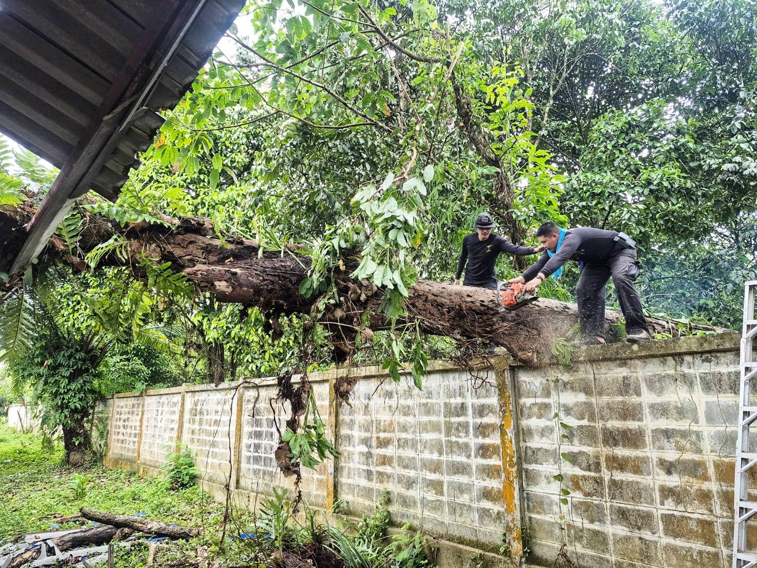 กำลังพลของหน่วยได้ร่วมกันตัดต้นไม้และกิ่งไม้ที่ล้มทับ เคลื่อนย้ายสิ่งของ พร้อมเร่งฟื้นฟูพื้นที่ให้กลับมาใช้งานได้ตามปกติ เพื่อให้นักเรียนสามารถกลับมาเรียนได้อย่างปลอดภัยและมั่นใจอีกครั้ง