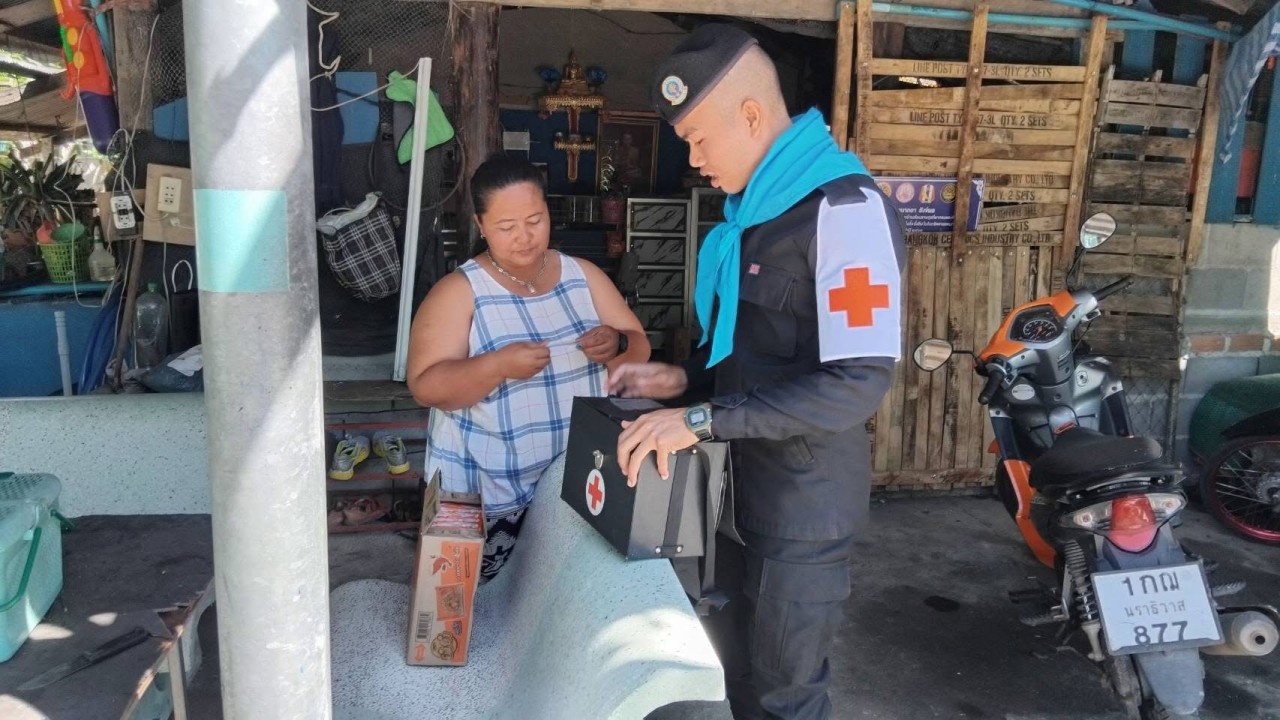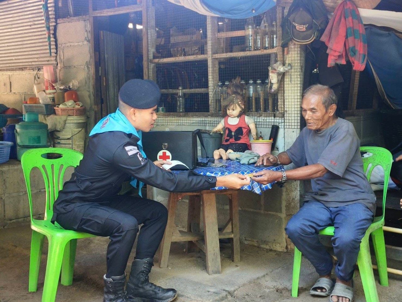 โดยเจ้าหน้าที่ได้ให้คำแนะนำด้านการดูแลสุขภาพ ตรวจสุขภาพเบื้องต้น และมอบยาสามัญประจำบ้านให้แก่ประชาชนในพื้นที่ ตามโครงการ “หมอเดินเท้า ทุกก้าว เพื่อประชาชน” เพื่อบรรเทาความเดือดร้อนเบื้องต้น และเสริมสร้างขวัญกำลังใจให้แก่พี่น้องประชาชน