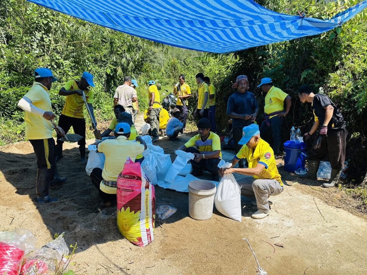 วันที่ 15 ตุลาคม 2568 ณ บ้านกูวา หมู่ที่ 1 ตำบลห้วยกระทิง อำเภอกรงปินัง จังหวัดยะลา หน่วยเฉพาะกิจกรมทหารพรานที่ 47 ร่วมกับปลัดตำบลห้วยกระทิง กำนัน ผู้ใหญ่บ้าน และประชาชนจิตอาสาในพื้นที่ ร่วมแรงร่วมใจจัดกิจกรรม “จิตอาสาการสร้างฝายชะลอน้ำ” เพื่อเป็นแหล่งกักเก็บน้ำตามธรรมชาติ ช่วยหล่อเลี้ยงพื้นที่การเกษตรและชุมชนโดยรอบ