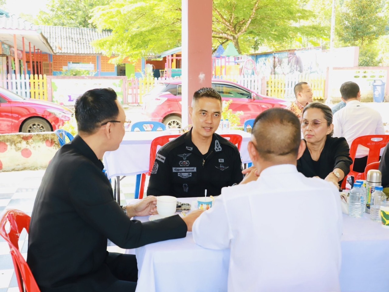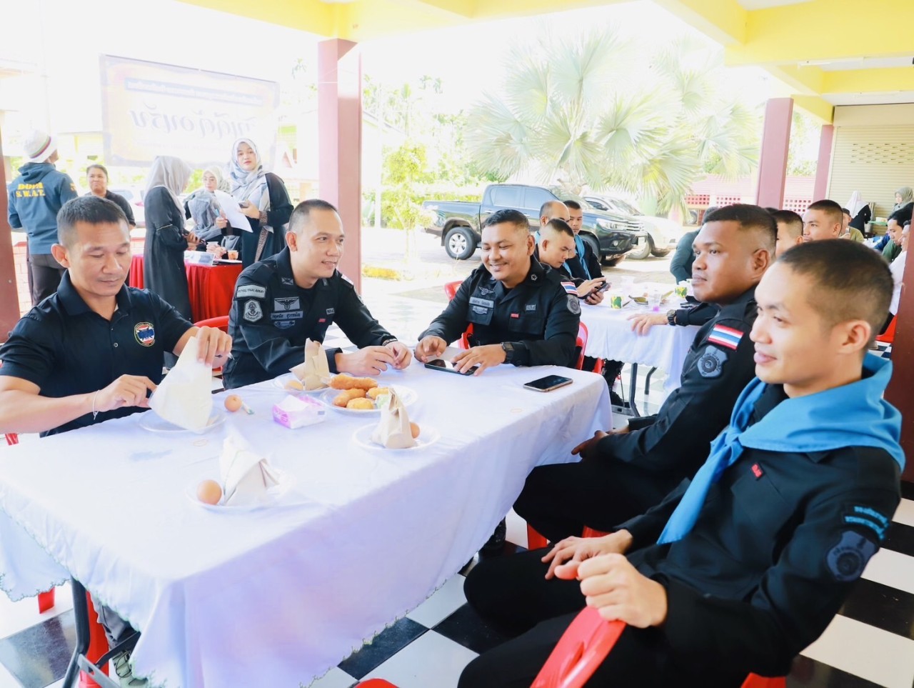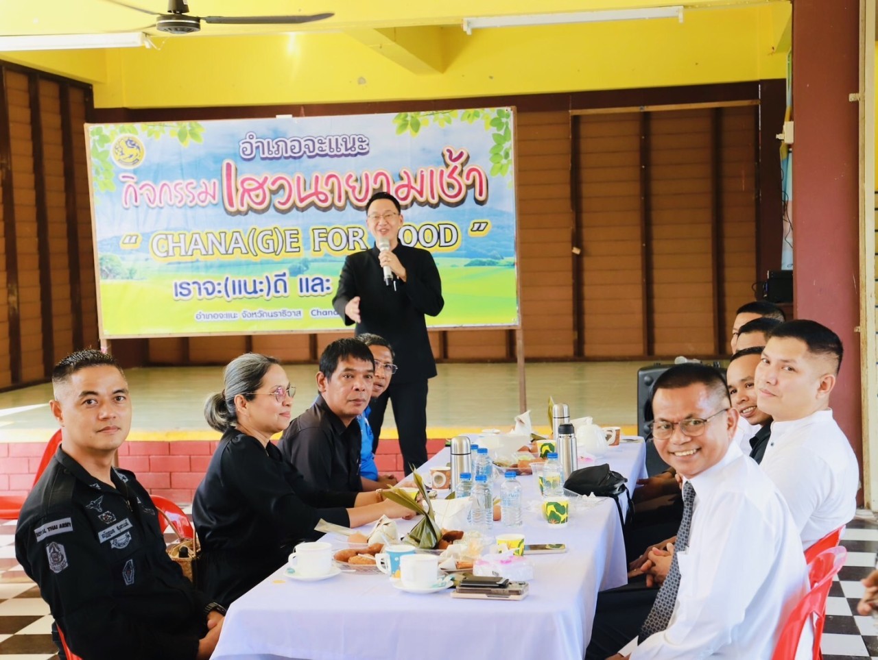 วันที่ 4 พฤศจิกายน 2568 เวลา 07.30 น. พันเอก ณัฏฐพล สุนทรนนท์ ผู้บังคับหน่วยเฉพาะกิจกรมทหารพรานที่ 49 พร้อมด้วยผู้บังคับกองร้อยในพื้นที่อำเภอจะแนะ เข้าร่วมกิจกรรม “เสวนากาแฟยามเช้า” ร่วมกับ พันตำรวจเอก วีระศักดิ์ เพอแสละ ผู้กำกับการสถานีตำรวจภูธรจะแนะ, หัวหน้าส่วนราชการ, บุคลากรทางการศึกษา, ผู้นำท้องที่, ผู้นำท้องถิ่น และผู้นำศาสนา