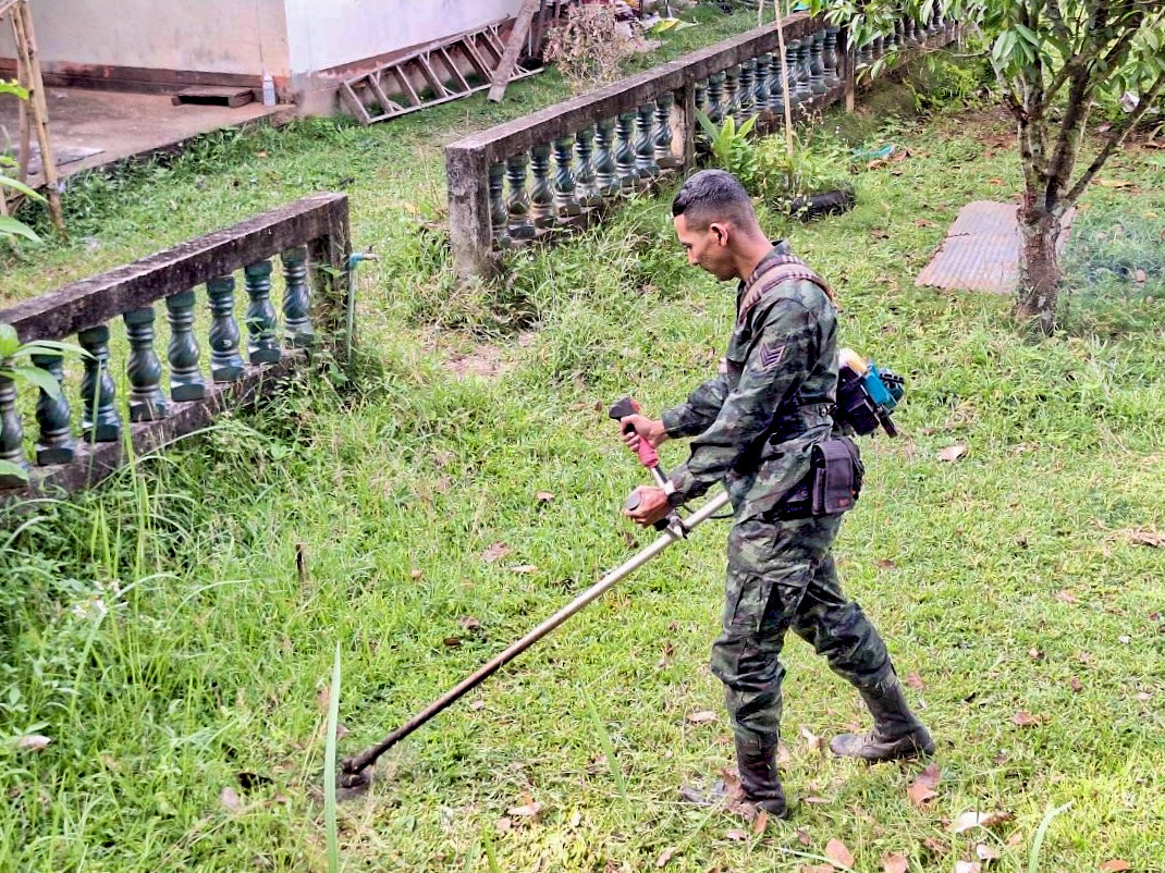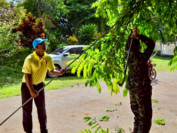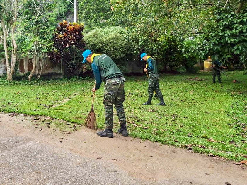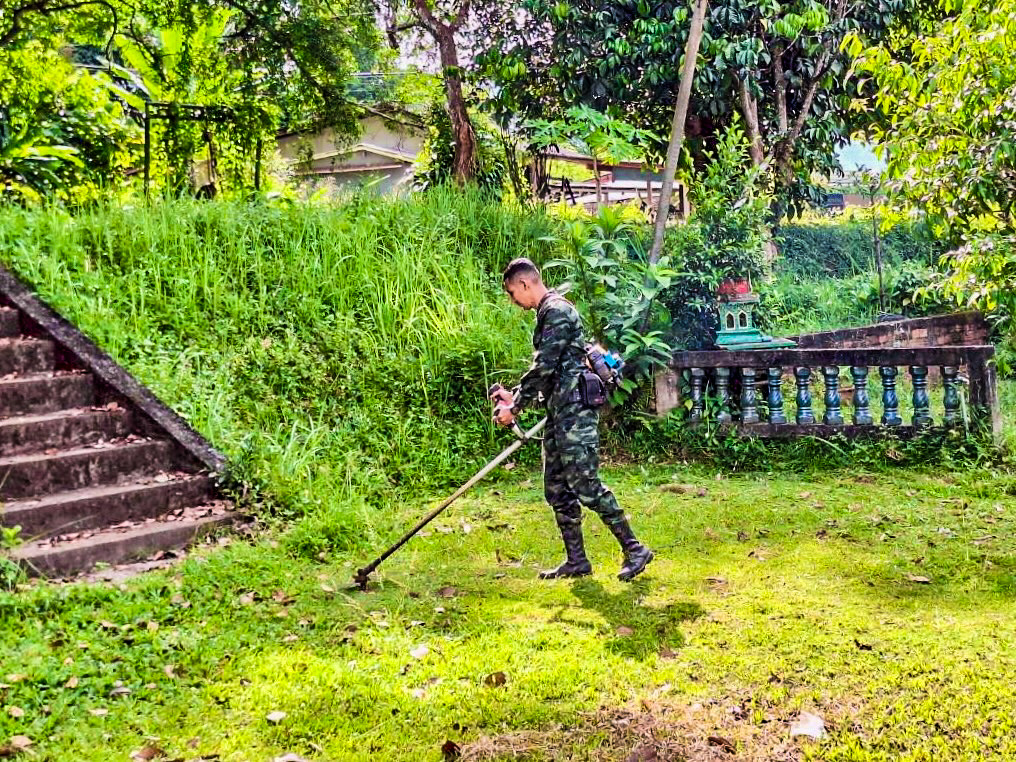 วันที่ 9 ตุลาคม 2568 ณ พื้นที่ส่วนรวมของชุมชนวัดถ้ำทะลุ หมู่ที่ 1 ตำบลถ้ำทะลุ อำเภอบันนังสตา จังหวัดยะลา หน่วยเฉพาะกิจกองพันทหารราบที่ 1 (ฉก.พัน.ร.ที่ 1) จัดกำลังพลจากกองร้อยหน่วยขึ้นตรง ร่วมกับส่วนราชการ และพี่น้องประชาชนในพื้นที่ ดำเนินกิจกรรม “บำเพ็ญสาธารณประโยชน์” เพื่อพัฒนาและปรับภูมิทัศน์บริเวณพื้นที่ส่วนรวมของชุมชน ให้มีความสะอาด เป็นระเบียบ และสวยงามน่ามอง