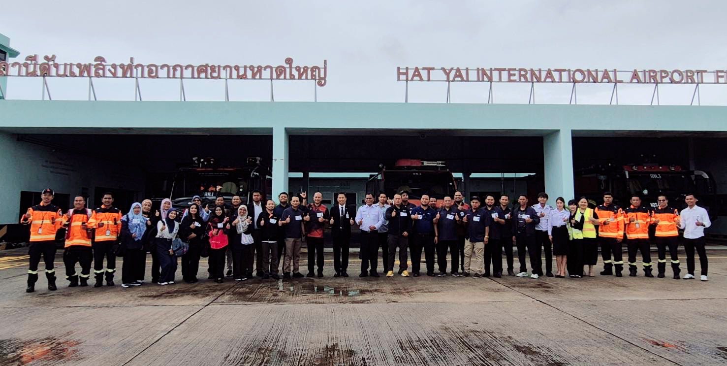 ในการนี้ ผู้บริหารและพนักงานส่วนดับเพลิงท่าอากาศยานหาดใหญ่ รวมถึงผู้เกี่ยวข้อง ร่วมให้การต้อนรับและแลกเปลี่ยนประสบการณ์การทำงานอย่างอบอุ่น ณ ท่าอากาศยานหาดใหญ่