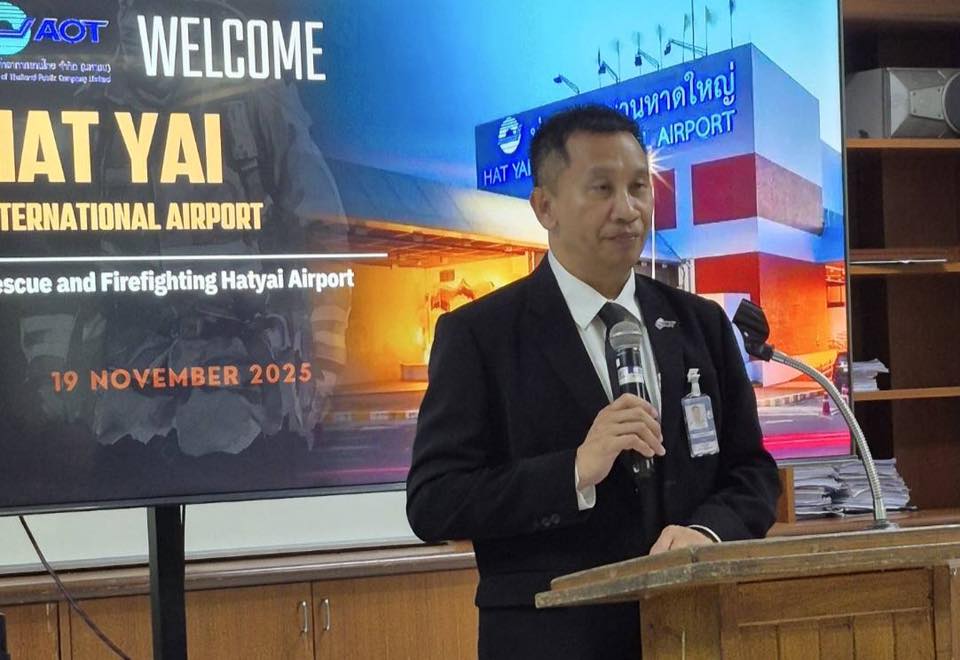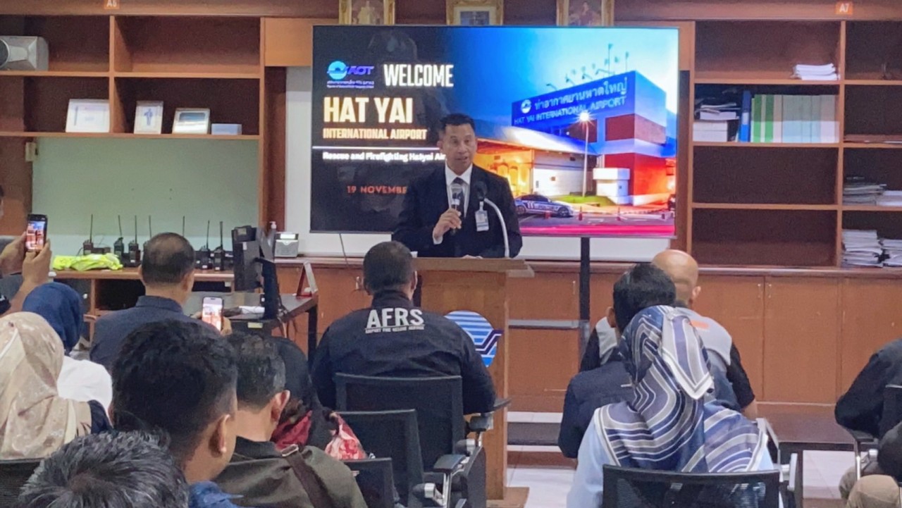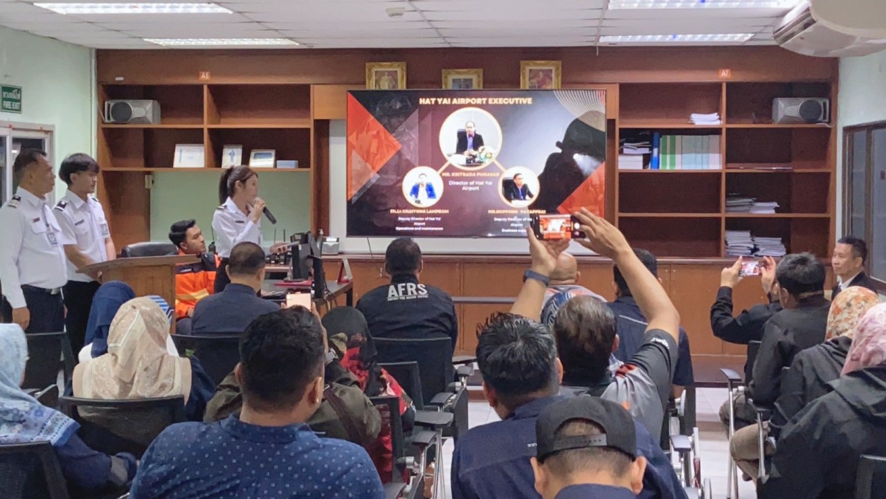 วันที่ 19 พฤศจิกายน 2568 เวลา 13.00 น. เรืออากาศเอกชัยยงค์ หลำพรม รองผู้อำนวยการท่าอากาศยานหาดใหญ่ (ด้านปฏิบัติการและบำรุงรักษา) (รหญ.(ปร.)) เป็นประธานให้การต้อนรับคณะจากท่าอากาศยานนานาชาติปีนัง ประเทศมาเลเซีย ในโอกาสเดินทางเข้าเยี่ยมชมและศึกษาดูงานด้านการปฏิบัติงานของส่วนดับเพลิงและกู้ภัย ท่าอากาศยานหาดใหญ่