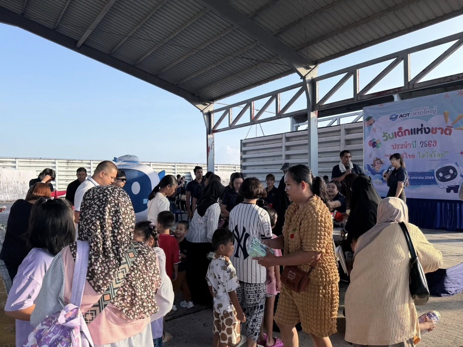 วันที่ 10 มกราคม 2569 ท่าอากาศยานหาดใหญ่ นำโดย นายกฤษฎา พุกะทรัพย์ ผู้อำนวยการท่าอากาศยานหาดใหญ่ (ผหญ.) พร้อมด้วย ผู้บริหารและพนักงานท่าอากาศยานหาดใหญ่ ร่วมจัดกิจกรรม “วันเด็กแห่งชาติ” ประจำปี 2569 ร่วมกับ กองบิน 56 โดยมี นาวาอากาศเอก ณัฏปภัสร์ พุทธินนทนะวงษ์ ผู้บังคับการกองบิน 56 เป็นประธานในการจัดกิจกรรม พร้อมด้วยหน่วยงานต่างๆ เข้าร่วมจัดกิจกรรม ณ ลานจอดอากาศยานฝูงบิน 561 กองบิน 56 อำเภอคลองหอยโข่ง จังหวัดสงขลา ซึ่งท่าอากาศยานหาดใหญ่ได้มีการจัดกิจกรรมให้เด็ก ๆ และได้ร่วมมอบของขวัญในกิจกรรม เพื่อแสดงถึงความตระหนักในความสำคัญของเด็กและเยาวชน ที่จะเป็นกำลังสำคัญในการพัฒนาชาติบ้านเมือง และเป็นทรัพยากรบุคคลที่ทรงคุณค่าต่อไปในอนาคต