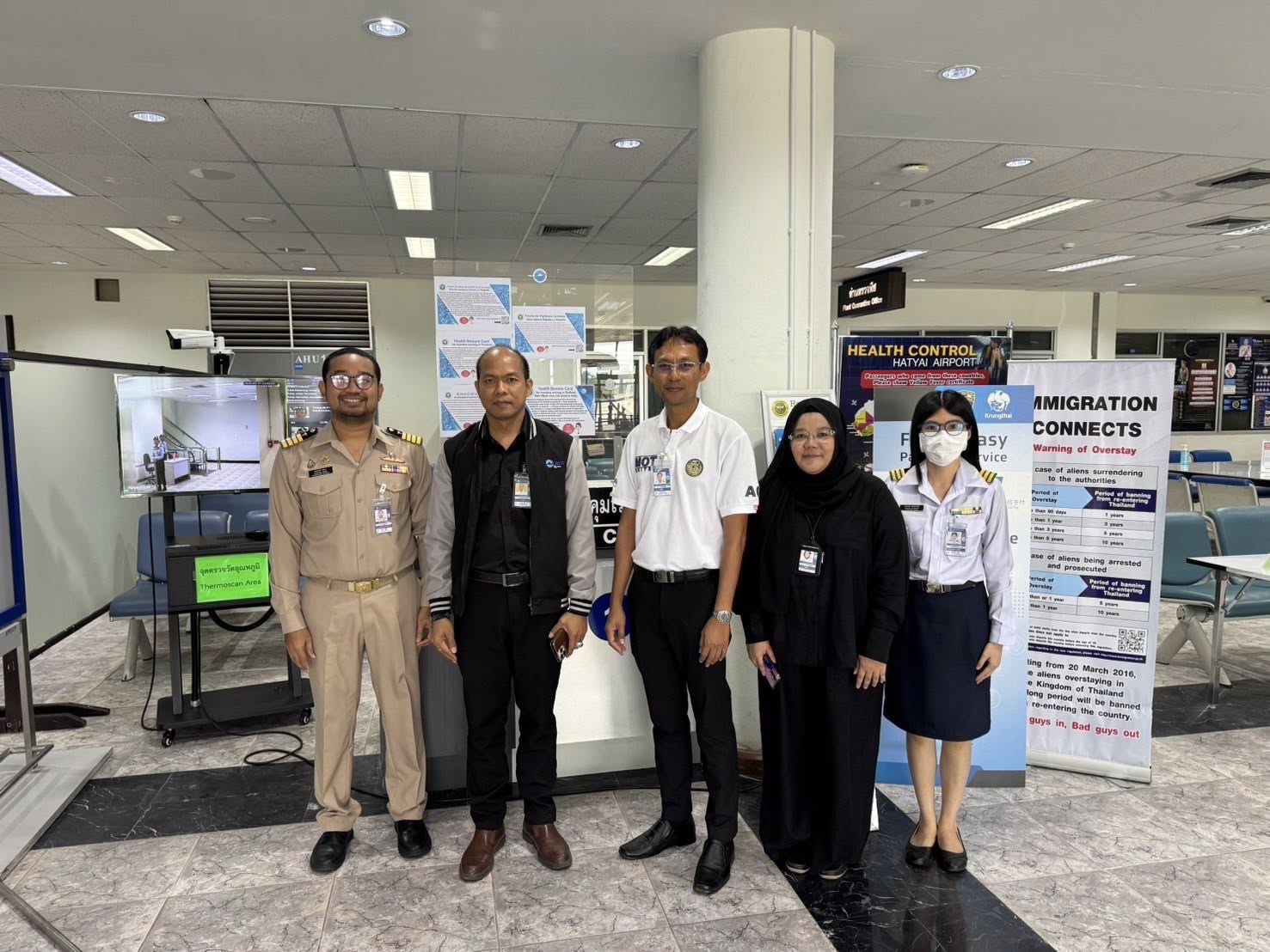 วันที่ 27 มกราคม 2569 นายกฤษฎา พุกะทรัพย์ ผู้อำนวยการท่าอากาศยานหาดใหญ่ (ผหญ.) พร้อมด้วยผู้บริหารท่าอากาศยานหาดใหญ่ ลงพื้นที่ห้องผู้โดยสารขาเข้าระหว่างประเทศ ทหญ. เพื่อตรวจเยี่ยมการปฏิบัติงานของด่านควบคุมโรคติดต่อระหว่างประเทศท่าอากาศยานหาดใหญ่ ในการคัดกรองโรคติดเชื้อไวรัสนิปาห์