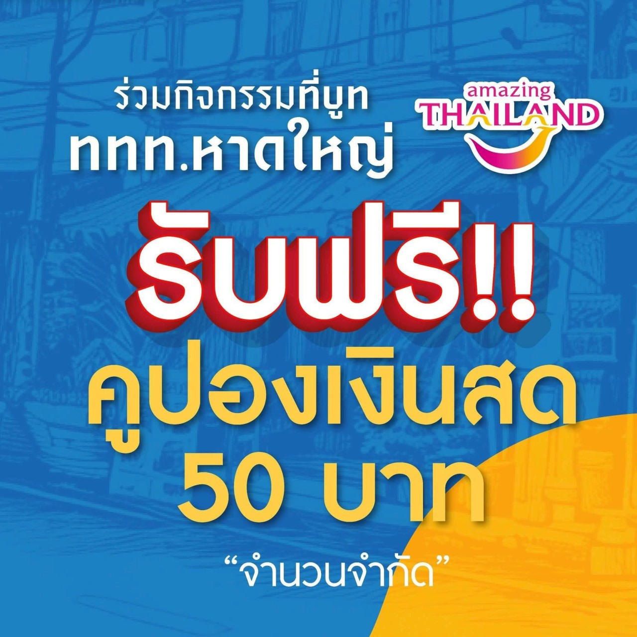 ภายในงานได้มีการจัดแสดงและจำหน่ายสินค้าท้องถิ่นและสินค้าที่เป็นอัตลักษณ์ของจังหวัด ประกอบด้วย สินค้าประเภทอาหารและเครื่องดื่ม ของใช้ของตกแต่ง จำนวน 50 คูหานอกจากนี้ มีกิจกรรมนาทีทองและ กิจกรรมสุ่มแจกเครื่องใช้ไฟฟ้าทุกวันสำหรับผู้ซื้อสินค้าตั้งแต่ 200 บาทขึ้นไป มูลค่ารวมกว่า 10,000 บาทต่อวัน และยังมีกิจกรรมแจกคูปองเงินสดมูลค่า 50 บาท จำนวนมากถึง 300 ใบต่อวัน โดยได้รับการสนับสนุนจากการ ท่องเที่ยวแห่งประเทศไทย สำนักงานหาดใหญ่