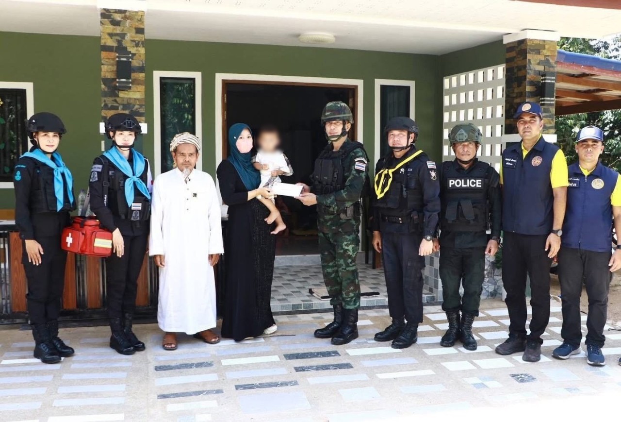 ทั้งนี้ ผู้บังคับหน่วยเฉพาะกิจนราธิวาส ได้เข้าเยี่ยมเยียนให้กำลังใจและมอบเงินช่วยเหลือแก่ นางสาวตีดายะ ดาโอ๊ะ ภรรยาของ อาสาสมัครทหารพรานนาซือรี แวสะมะแอ สังกัดหน่วยเฉพาะกิจกรมทหารพรานที่ 46 ซึ่งเสียชีวิตจากเหตุการณ์ความรุนแรงในพื้นที่ เมื่อวันที่ 10 ตุลาคม 2568 ที่ผ่านมา ณ บ้านวังทอง หมู่ที่ 4 ตำบลบองอ อำเภอระแงะ จังหวัดนราธิวาส