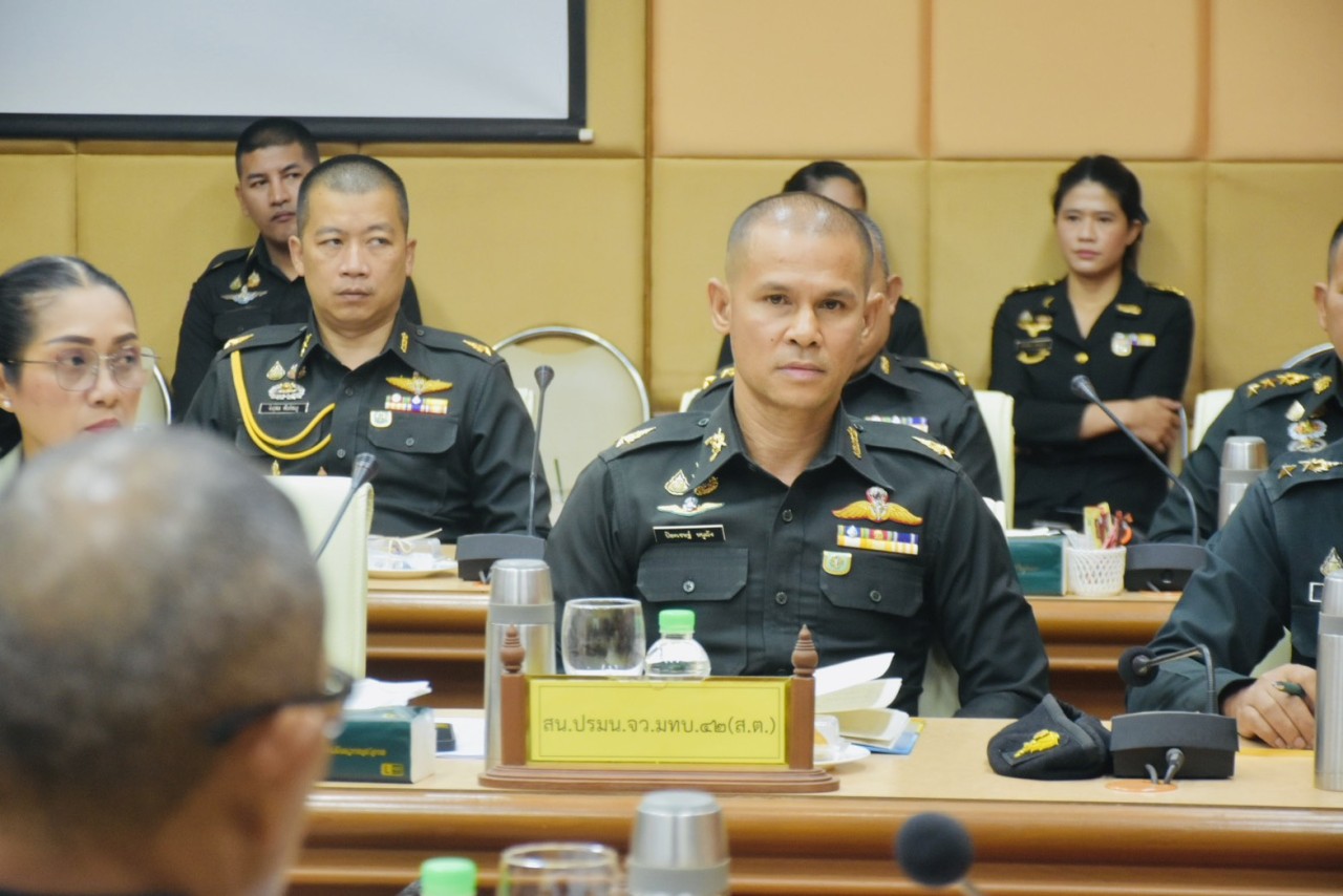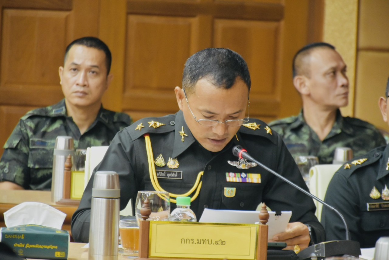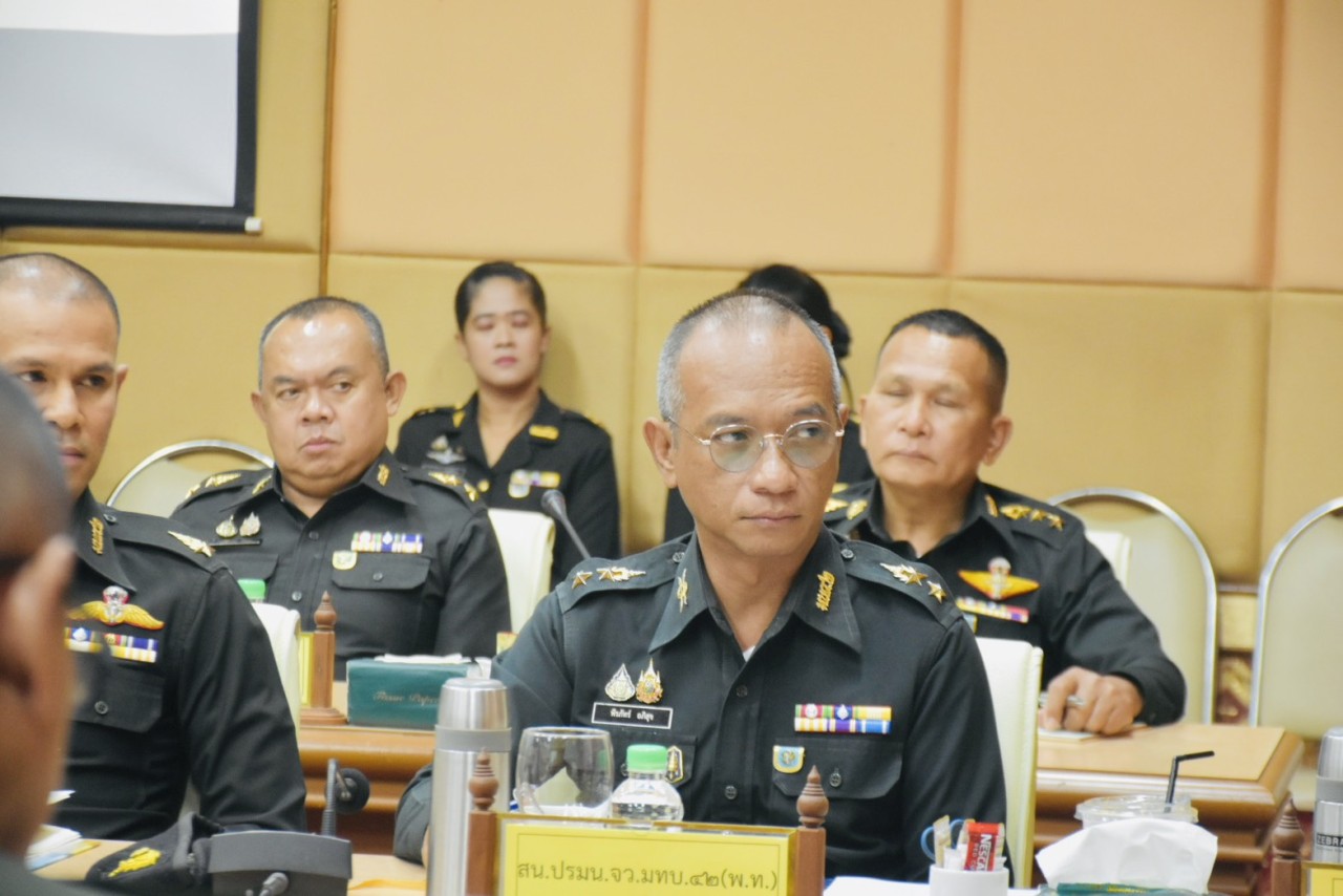 เมื่อวันที่ 6 ตุลาคม 2568 เวลา 0930 น. พลตรี ภูมเดชา พ่วงเจริญ ผู้บัญชาการมณฑลทหารบกที่ 42 เป็นประธานในการประชุมมอบนโยบาย แนวทางการปฎิบัติงานของมณฑลทหารบกที่ 42 และหน่วยขึ้นตรง มณฑลทหารบกที่ 42 ประจำปีงบประมาณ 2569 เพื่อกำกับทิศทางการทำงาน ให้เป็นไปในแนวทางเดียวกัน ทั้งในด้านความพร้อมของกำลังพล, การปฏิบัติภารกิจต่างๆ รวมถึงการพัฒนาเทคโนโลยีและขีดความสามารถของหน่วย ตลอดจนให้คำแนะนำเกี่ยวกับวิธีการหรือขั้นตอนในการทำงาน เพื่อให้เกิดประสิทธิภาพ และเป็นไปตามนโยบายที่กองทัพบกกำหนด โดยมี พันเอก ธนุตม์ พิศาลสิทธิวัฒน์ รองผู้บัญชาการมณฑลทหารบกที่ 42 พันเอกปริวิทย์ สุทธิโมกข์ เสนาธิการมณฑลทหารบกที่ 42 พันเอก กุดั่น ทองคำ ผู้บังคับกองพันมณฑลทหารบกที่ 42 พันเอก ณัฐวรอิชณน์ ศรีจันทร์ทอง ผู้บังคับศูนย์ฝึกนักศึกษาวิชาทหาร มณฑลทหารบกที่ 42 ตลอดจน ฝ่ายอำนวยการมณฑลทหารบกที่ 42 และกำลังพล เข้าร่วมการประชุมโดยพร้อมเพรียง ณ ห้องประชุมกองบัญชาการ มณฑลทหารบกที่ 42 ค่ายเสนาณรงค์ อำเภอหาดใหญ่ จังหวัดสงขลา