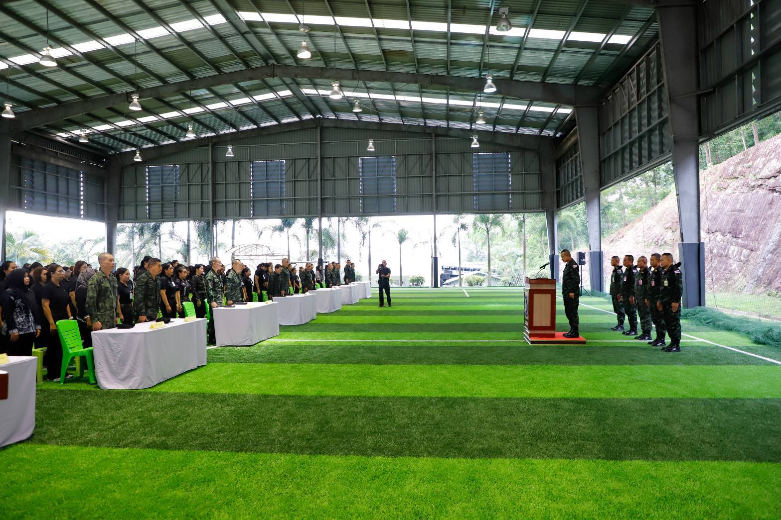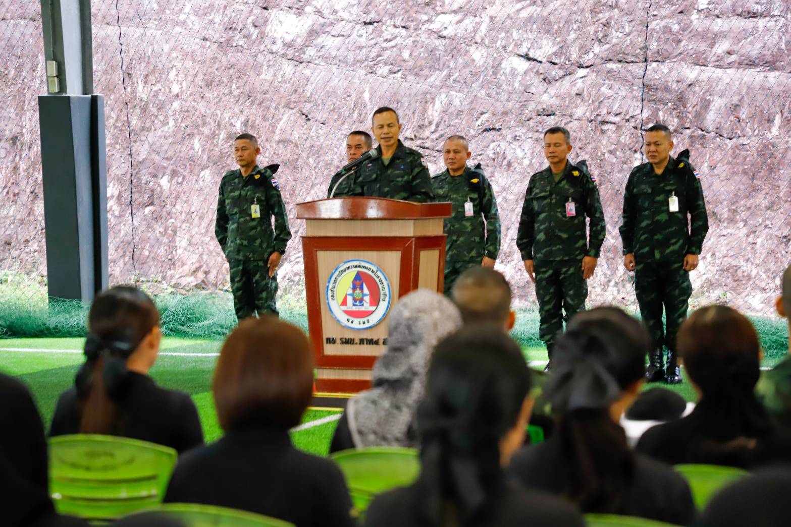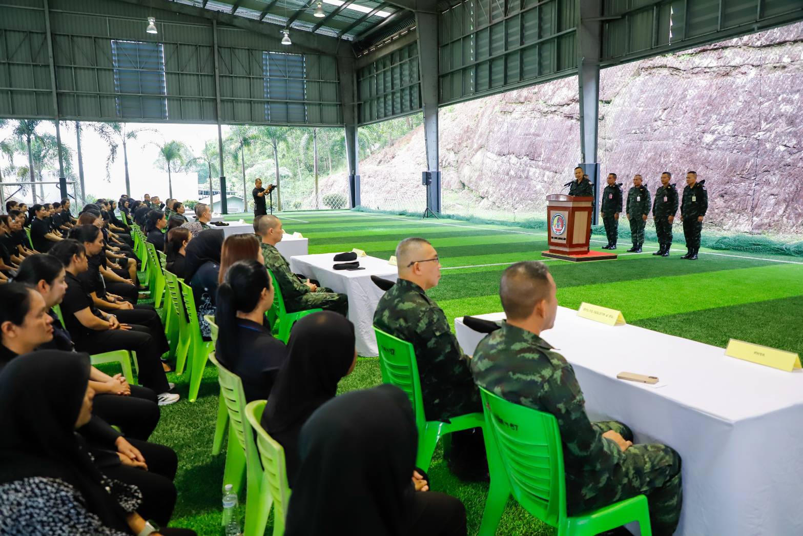 วันที่ 29 ตุลาคม 2568 เวลา 08.30 น. ณ สนามฟุตซอลนาควานิช ค่ายสิรินธร ตำบลเขาตูม อำเภอยะรัง จังหวัดปัตตานี พลโท นรธิป โพยนอก แม่ทัพภาคที่ 4 / ผู้อำนวยการรักษาความมั่นคงภายในภาค 4 พร้อมคณะผู้บังคับบัญชา ได้พบปะและมอบนโยบายให้กับบุคลากรลูกจ้าง โครงการจ้างงานเร่งด่วนประจำปี 2569 โดยมี ผู้อำนวยการสำนักฯ หัวหน้าฝ่ายกิจการพิเศษ และบุคลากรลูกจ้าง โครงการจ้างงานเร่งด่วน เข้าร่วมรับฟังนโยบาย