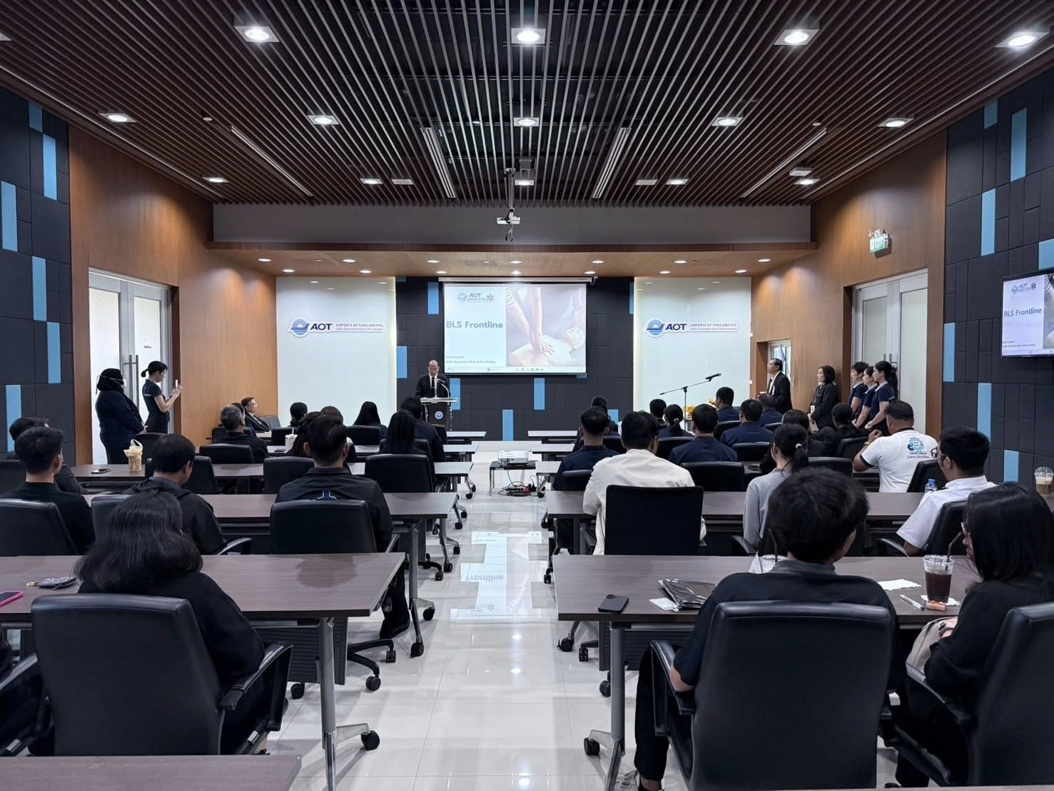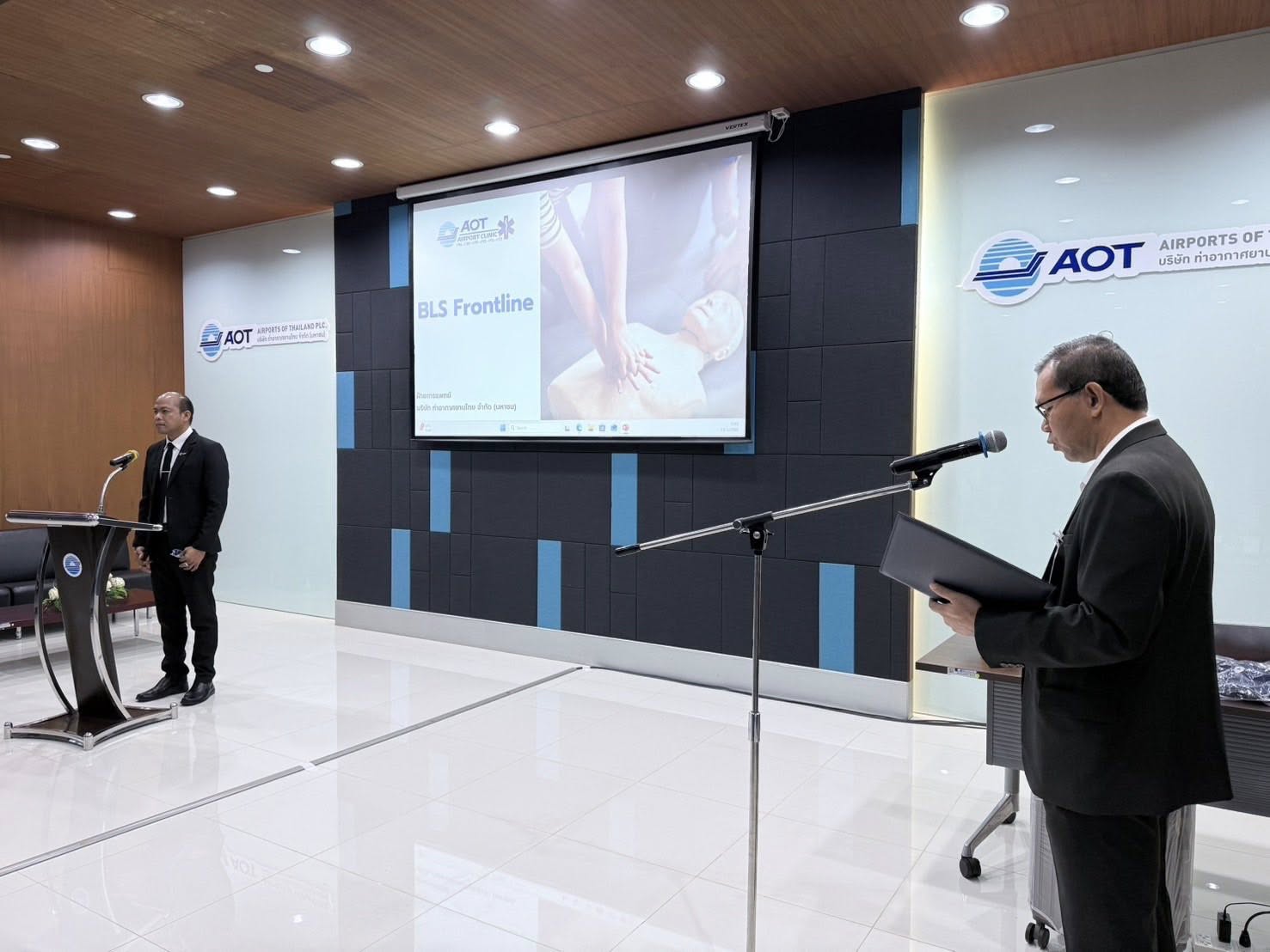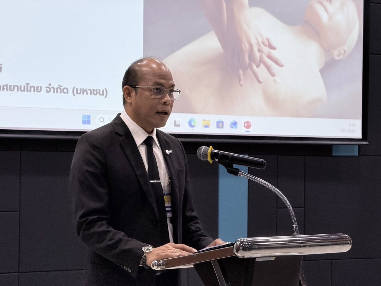 วันที่ 13 มกราคม 2569 (เวลา 09.00 น.) นายกฤษฎา พุกะทรัพย์ ผู้อำนวยการท่าอากาศยานหาดใหญ่ (ผหญ.) เป็นประธานในพิธีเปิดโครงการฝึกอบรมหลักสูตร “พัฒนาศักยภาพ Front Line ในการช่วยเหลือทางการแพทย์ Basic Life Support” ประจำปีงบประมาณ 2569 ณ ทหญ. ให้กับพนักงานและลูกจ้างท่าอากาศยานหาดใหญ่ที่ปฏิบัติงานสัมผัสกับผู้รับบริการ จำนวน 50 คน โดยฝ่ายการแพทย์ (ฝพท.) จัดโครงการฝึกอบรมในครั้งนี้ เพื่อให้ผู้เข้ารับการฝึกอบรมมีทักษะ ความรู้ ความเข้าใจในการช่วยฟื้นชีพขั้นพื้นฐาน และการใช้เครื่องฟื้นคืนคลื่นหัวใจด้วยไฟฟ้าอัตโนมัติ (Automated External Defibrillator : AED) ได้อย่างถูกวิธี มีประสิทธิภาพและปลอดภัย