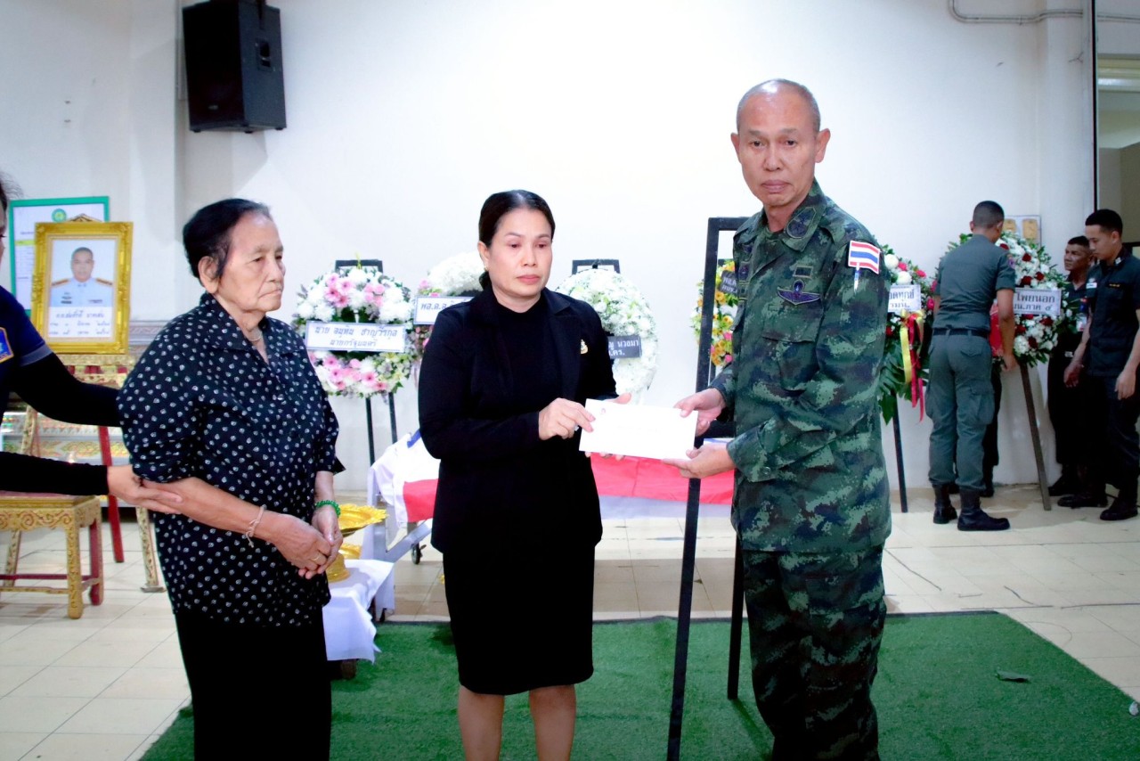 ในการนี้ พลตรี กรกฎ ภู่โชติ รองแม่ทัพภาคที่ 4/รองผู้อำนวยการรักษาความมั่นคงภายในภาค 4 ส่วนหน้า เป็นผู้แทนวางหรีดเคารพศพของ พลเอก พนา แคล้วปลอดทุกข์ ผู้บัญชาการทหารบก / รองผู้อำนวยการรักษาความมั่นคงภายในราชอาณาจักร , พลโท นรธิป โพยนอก แม่ทัพภาคที่ 4 / ผู้อำนวยการรักษาความมั่นคงภายในภาค 4 พร้อมมอบเหรียญบางระจันให้แก่ครอบครัวของ ดาบตำรวจ สมศักดิ์ นาคเสน ผู้บังคับหมู่ กองกำกับการตำรวจตระเวนชายแดนที่ 44 เพื่อประกาศเกียรติคุณยกย่องเชิดชูเกียรติแก่วีรชนผู้กล้าในการเสียสละ ตลอดจนรับมอบเงินช่วยเหลือเยียวยาให้แก่ครอบครัวผู้เสียชีวิต