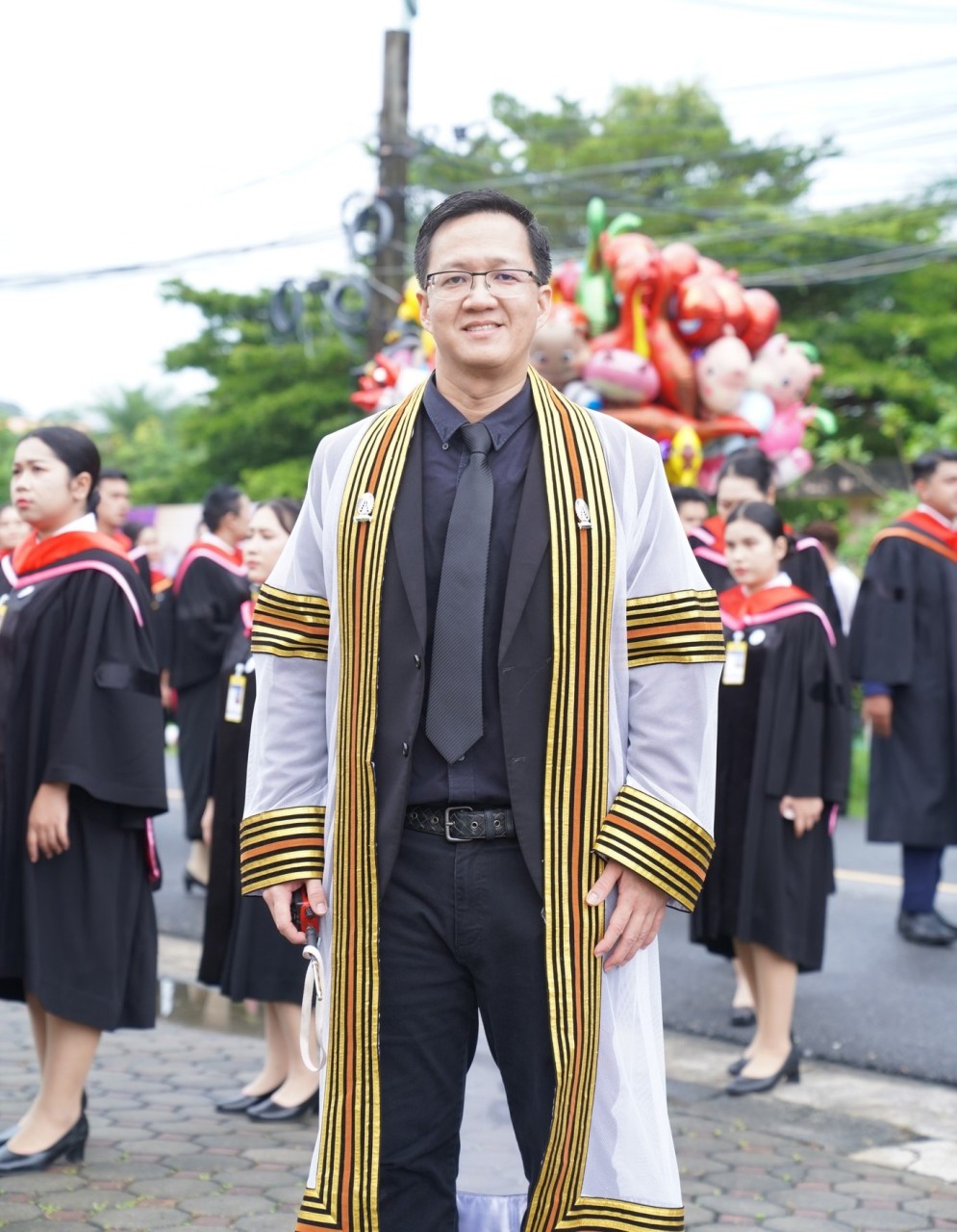 ผศ.พิเชษฐ์ จันทวี กล่าวว่า ขอแสดงความยินดีกับบัณฑิตและมหาบัณฑิตทุกคน ในโอกาสเข้ารับพระราชทานปริญญาบัตรประจำปีการศึกษา 2566 ความสำเร็จในวันนี้เป็นผลมาจากความมุ่งมั่น อดทน และความเพียรพยายาม ขอให้บัณฑิตนำความรู้ความสามารถ ไปใช้ในการดำเนินชีวิตและประกอบอาชีพด้วยความซื่อสัตย์สุจริต เพื่อประโยชน์ต่อตนเอง สังคม และประเทศชาติ รวมถึงช่วยกันพัฒนาชุมชนท้องถิ่นของตนอย่างเต็มกำลังความสามารถ ให้สมกับคำที่ว่า คนของพระราชา ข้าของแผ่นดิน
