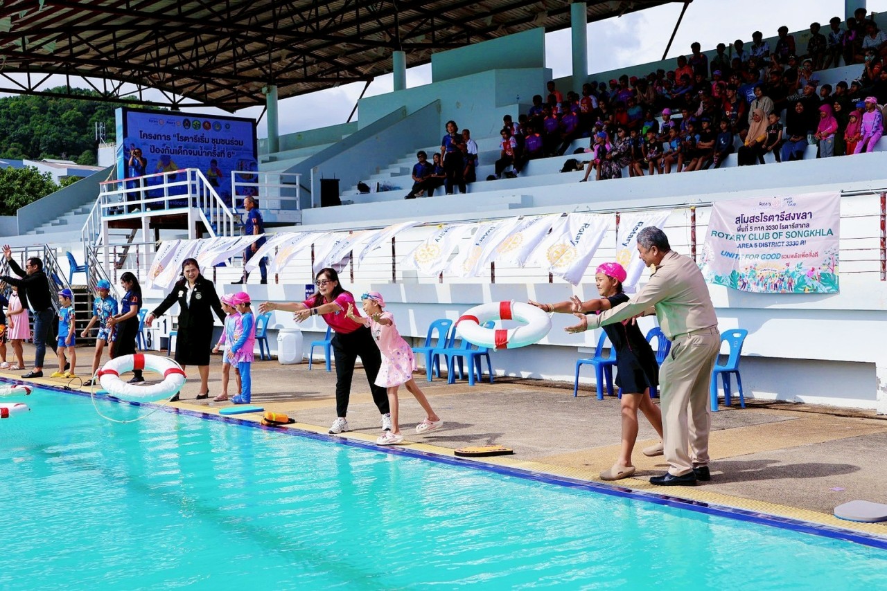 สโมสรโรตารีสงขลา ร่วมกับมหาวิทยาลัยราชภัฏสงขลา (มรภ.สงขลา) จัดโครงการ “โรตารีเริ่ม ชุมชนร่วม ป้องกันเด็กจมน้ำ ครั้งที่ 6” ระหว่างวันที่ 20-24 ตุลาคม 2568 ณ สระว่ายน้ำ มรภ.สงขลา เพื่อสร้างความรู้และพัฒนาทักษะการว่ายน้ำให้กับเด็กและเยาวชนในพื้นที่อำเภอเมืองสงขลา จังหวัดสงขลา เสริมสร้างทักษะการว่ายน้ำแก่เยาวชน ให้สามารถช่วยเหลือตนเองและผู้อื่นได้ ปลอดภัยจากอุบัติเหตุทางน้ำ ภายใต้แนวคิด “ตะโกน โยน ยื่น” โดยได้รับเกียรติจาก ผศ.พลากร นัคราบัณฑิต ผู้ช่วยอธิการบดี มรภ.สงขลา เข้าร่วมดำเนินกิจกรรมและร่วมสอนด้วยตนเอง และมี นายศรัณยู มุขวรรณ์ รองนายกเทศมนตรีเมืองเขารูปช้าง ร่วมเปิดโครงการ สร้างความประทับใจแก่เด็กและเยาวชนที่เข้าร่วม สะท้อนให้เห็นถึงพลังความร่วมมือระหว่างภาคการศึกษาและภาคประชาสังคมในการยกระดับความปลอดภัยของชุมชน