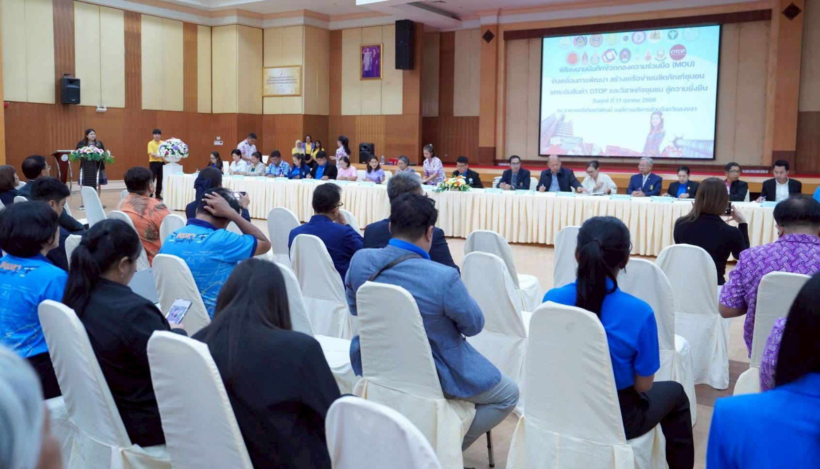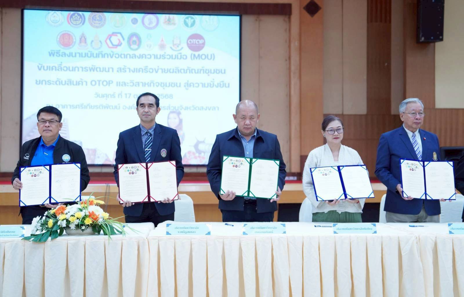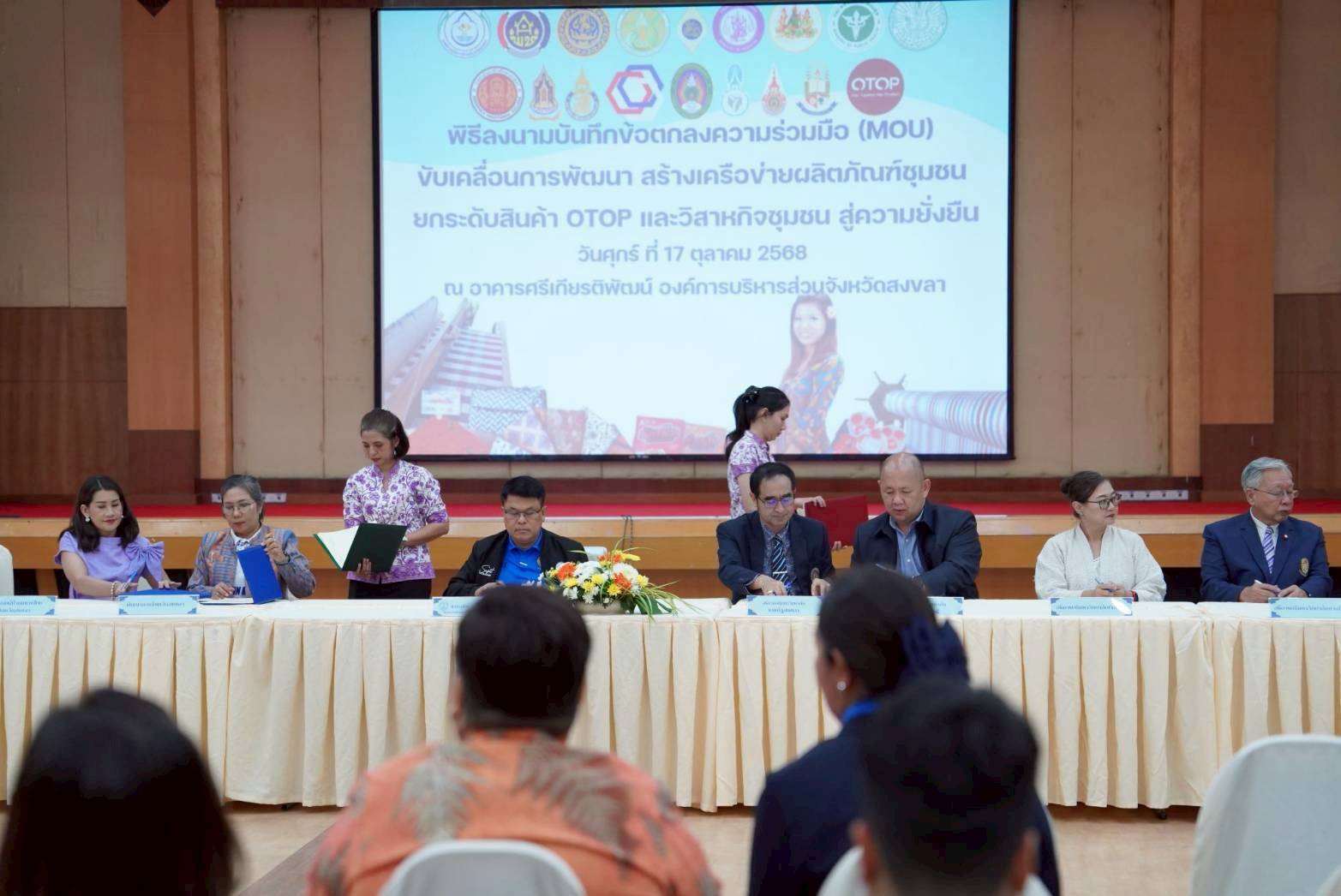 อบจ.สงขลา ผนึกกำลัง มรภ.สงขลา และองค์กรพันธมิตร ลงนามความร่วมมือขับเคลื่อนการพัฒนา สร้างเครือข่ายผลิตภัณฑ์ชุมชน ยกระดับสินค้า OTOP และวิสาหกิจชุมชนสู่ความยั่งยืน สนับสนุนทางวิชาการ การฝึกอบรม ควบคู่ให้ความรู้ในด้านการบริหารจัดการ การตลาด การออกแบบ และการใช้เทคโนโลยี