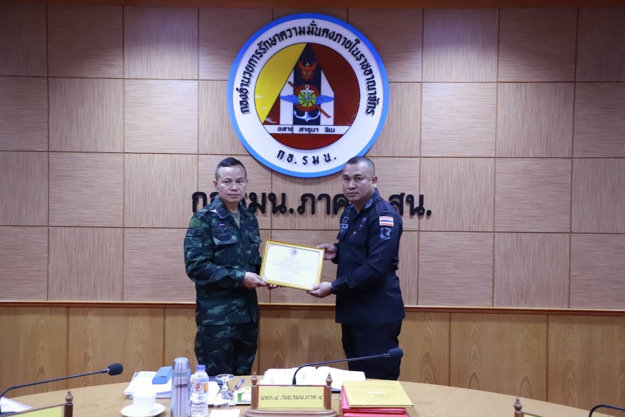 ก่อนเริ่มวาระการประชุม เพื่อเป็นขวัญและกำลังใจให้กับกำลังพลในการปฏิบัติหน้าที่ในพื้นที่จังหวัดชายแดนภาคใต้ แม่ทัพภาคที่ 4 ได้มอบประกาศนียบัตรแก่หน่วยที่มีผลการปฏิบัติงานดีเด่นในด้านต่าง ๆ  ประกอบด้วย หน่วยที่ปฏิบัติงานในการช่วยเหลือประชาชนจากสถานการณ์อุทกภัยดีเด่น จำนวน 2 หน่วย ได้แก่ หน่วยเฉพาะกิจกรมทหารพรานที่ 44 และ หน่วยเฉพาะกิจกองพันทหารราบที่ 2 หน่วยที่ปฏิบัติงานช่วยเหลือประชาชนจากเหตุการณ์ประสบอุบัติเหตุในพื้นที่ จำนวน 4 หน่วย ได้แก่หน่วยเฉพาะกิจนาวิกโยธินกองทัพเรือ , หน่วยเฉพาะกิจกรมทหารพรานที่ 41, หน่วยเฉพาะกิจกรมทหารพรานที่ 44 และ หน่วยเฉพาะกิจกรมทหารพรานที่ 46 หน่วยที่ปฏิบัติงานด้านยุทธการดีเด่นได้แก่ ชุดคุ้มครองตำบลน้ำดำ  ทั้งนี้ แม่ทัพภาคที่ 4 ได้กล่าวชื่นชมและแสดงความยินดีกับทุกหน่วยและกำลังพลที่มีผลงานโดดเด่น พร้อมย้ำว่าทุกภารกิจล้วนเป็นความร่วมมือสำคัญในการแก้ไขปัญหาและสร้างความสันติสุขในพื้นที่