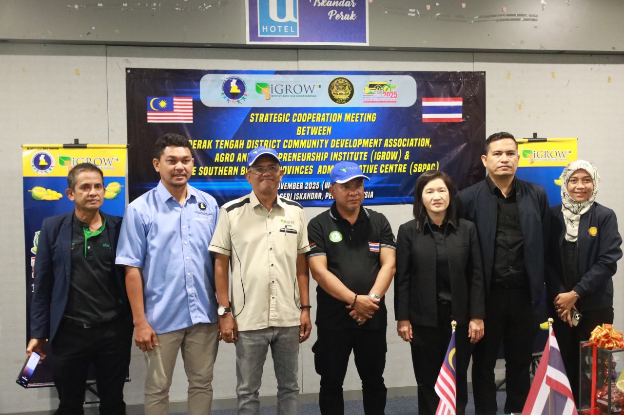 การประชุมเชิงยุทธศาสตร์ระหว่าง สมาคมพัฒนาชุมชนอำเภอเปรักกลาง, สถาบันการเกษตรและผู้ประกอบการ (IGROW) และ ศูนย์อำนวยการบริหารจังหวัดชายแดนภาคใต้ (ศอ.บต.) ได้จัดขึ้น ณ โรงแรม D Hotel Seri Iskandar เมื่อวันที่ 5 พฤศจิกายน 2568 เพื่อวางรากฐานความร่วมมือทางเศรษฐกิจข้ามพรมแดนระหว่างมาเลเซียและไทย โดยการประชุมมุ่งส่งเสริมเศรษฐกิจฐานรากและขยายตลาดให้ วิสาหกิจขนาดกลาง ขนาดย่อม และรายย่อย (MSMEs) โดยเฉพาะธุรกิจด้านเกษตรกรรม (Agribusiness) ผ่านแนวคิด “โมเดล IGROW ในภาคใต้ของไทย – เปิดตลาดผลิตภัณฑ์ IKS (SME)” เพื่อสร้างเส้นทางการส่งออกใหม่ระหว่างรัฐเปรักกับภาคใต้ของไทย