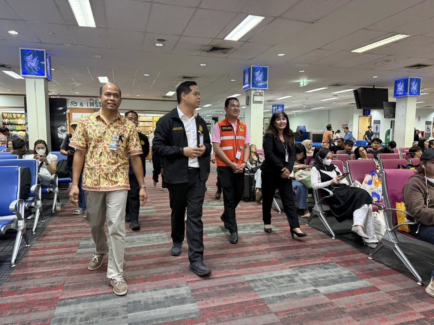 เวลา 15.00 น. นายกฤษฎา พุกะทรัพย์ ผู้อำนวยการท่าอากาศยานหาดใหญ่ (ผหญ.) พร้อมด้วยผู้บริหาร พนักงานลูกจ้าง ให้การต้อนรับและอำนวยความสะดวกในการตรวจเยี่ยม โดยได้รายงานความคืบหน้าการจัดทำแผนพัฒนาท่าอากาศยานหาดใหญ่ และความพร้อมของ ทหญ. ในการรองรับการเดินทางของผู้โดยสารในช่วงเทศกาลสงกรานต์ ประจำปี 2569 ซึ่งมีเที่ยวบินเข้า – ออก เฉลี่ยประมาณ 62 เที่ยวบินต่อวัน ผู้โดยสารกว่า 9,500 คนต่อวัน และประมาณสินค้าเข้า – ออก กว่า 9,000 กิโลกรัมต่อวัน