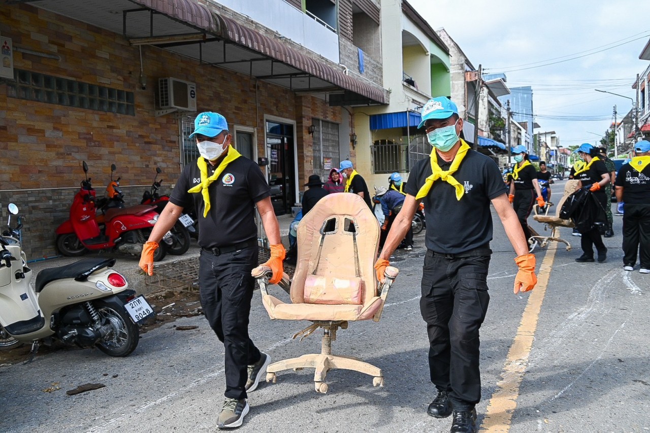โดยกำลังพลจิตอาสาได้ร่วมแรงร่วมใจกันปฏิบัติงานอย่างเต็มกำลัง ทั้งการเก็บกวาดเศษขยะ ซากวัสดุ และสิ่งกีดขวาง ขจัดคราบโคลนและสิ่งปฏิกูลที่สะสมตามถนน อาคาร บ้านเรือน และพื้นที่สาธารณะ ตลอดจนล้างทำความสะอาดเพื่อสุขอนามัยที่ดีของชุมชน อันเป็นการเร่งฟื้นฟูสภาพแวดล้อมให้กลับมาสะอาด เป็นระเบียบ ปลอดภัย และเอื้อต่อการดำรงชีวิตของประชาชน พร้อมสร้างความเชื่อมั่นและขวัญกำลังใจให้ประชาชนสามารถกลับมาใช้ชีวิตประจำวันได้ตามปกติโดยเร็ว