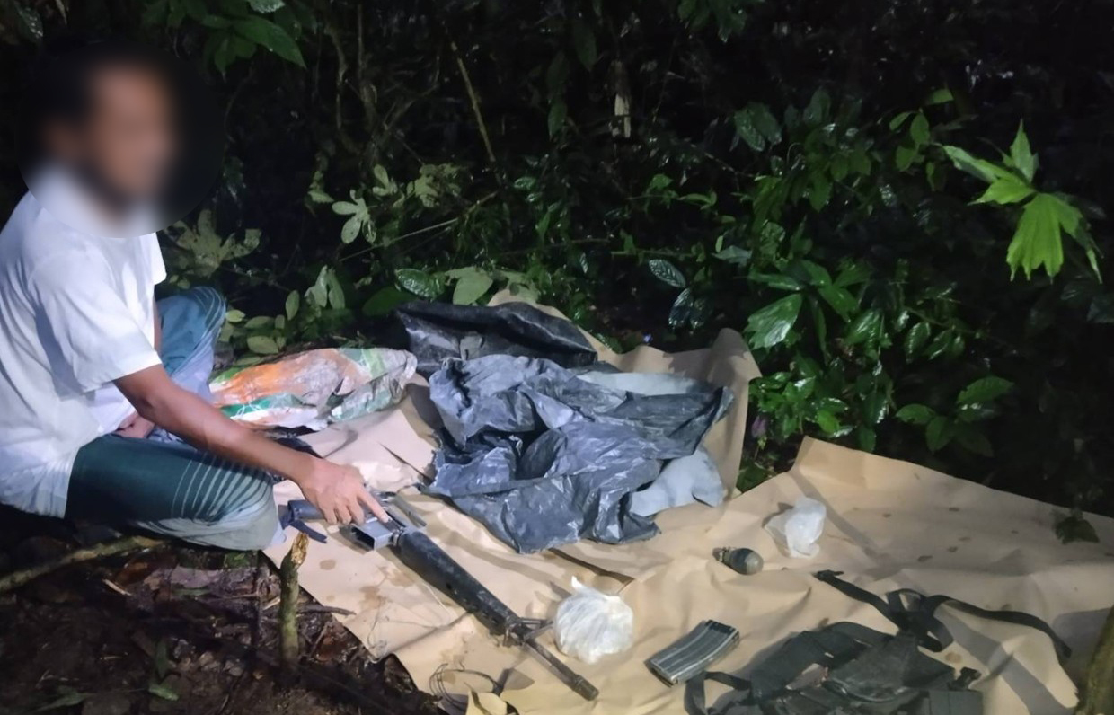 จากผลการซักถาม นายรอซะ (สงวนนามสกุล) ให้การยอมรับว่า ได้ให้การช่วยเหลือและสนับสนุนในการรับ–ส่งอาวุธปืนและวัตถุระเบิดให้กับสมาชิกกลุ่มผู้ก่อเหตุรุนแรงในพื้นที่อำเภอโคกโพธิ์ จังหวัดปัตตานี ต่อมา เมื่อวันที่ 23 ตุลาคม 2568 เจ้าหน้าที่ได้ขยายผลจากการซักถาม นำไปสู่การชี้จุดซุกซ่อนอาวุธปืนและสิ่งของ บริเวณสวนยางพารา บ้านเกาะตา หมู่ที่ 3 ตำบลทุ่งพลา อำเภอโคกโพธิ์ จังหวัดปัตตานี จำนวน 2 จุด ตรวจยึดได้ดังนี้