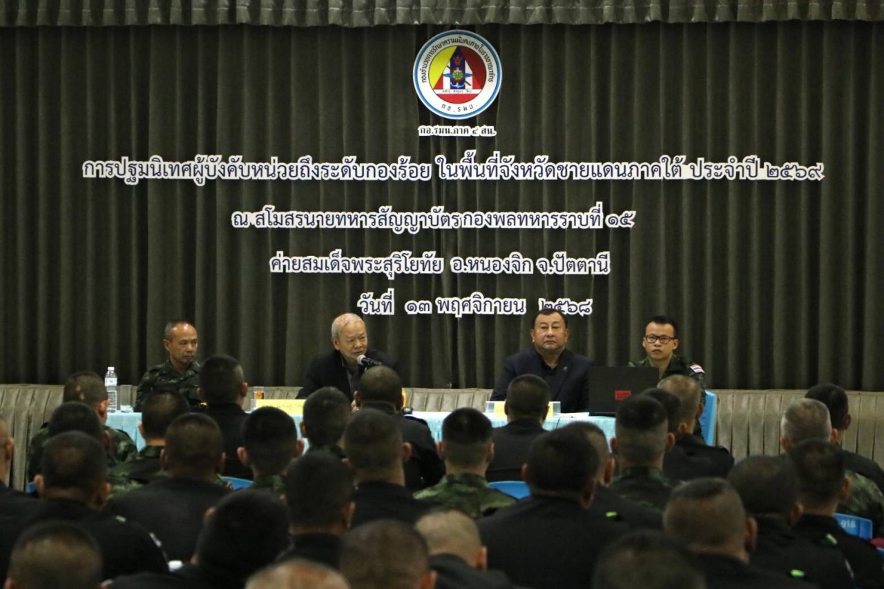 วันนี้ ( 13 พฤศจิกายน 2568 ) เวลา 09.30 น. ที่สโมสรนายทหารสัญญาบัตรกองพลทหารราบที่ 15 ค่ายสมเด็จพระสุริโยทัย อำเภอหนองจิก จังหวัดปัตตานี พลตรี ชาคริต อุจะรัตน รองแม่ทัพภาคที่ 4 / รองผู้อำนวยการรักษาความมั่นคงภายในภาค 4 ส่วนหน้า เป็นประธานเปิดปฐมนิเทศผู้บังคับหน่วยถึงระดับผู้บังคับกองร้อย ในพื้นที่จังหวัดชายแดนภาคใต้ ประจำปี 2569 โดยมี ผู้บังคับบัญชาในส่วนกองพลทหารราบที่15 และผู้แทนฝ่ายอำนวยการ กองอำนวยการรักษาความมั่นคงภายในภาค 4 ส่วนหน้า ให้การต้อนรับและร่วมรับฟังการบรรยาย ทั้งนี้โดยมีวิทยากรบรรยายพิเศษ ภายใต้หัวข้อ “ถ่ายทอดแนวคิดประสบการณ์ ในการทำงานและการแก้ไขปัญหาในจังหวัดชายแดนภาคใต้“