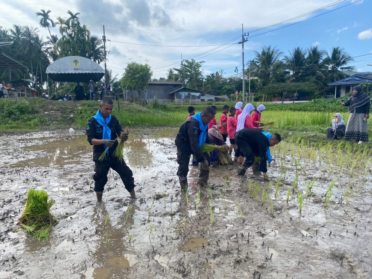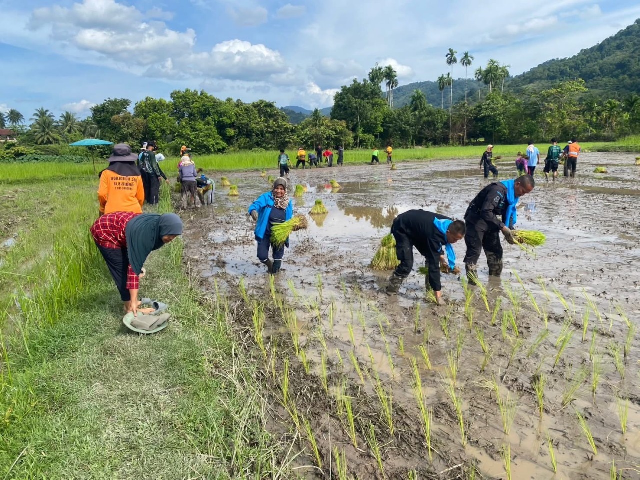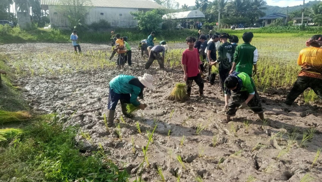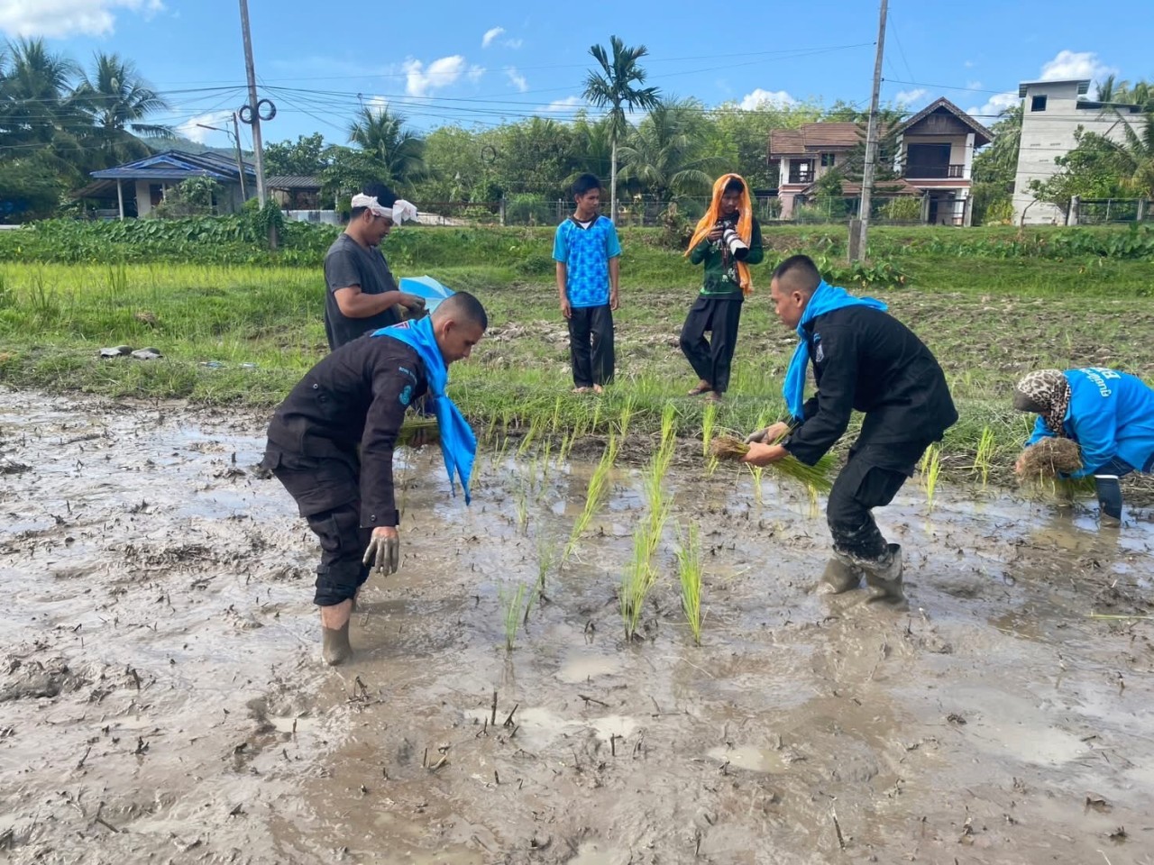 วันที่ 4 พฤศจิกายน 2568 เวลา 08.30 น. พันเอก นพดล พรหมมาก ผู้บังคับหน่วยเฉพาะกิจกรมทหารพรานที่ 46 มอบหมายให้ จ่าสิบเอกไพโรจน์ ขุนฤทธิ์ รองหัวหน้าชุดปฏิบัติการกิจการพลเรือน พร้อมกำลังพล เข้าร่วมกิจกรรม “ดำนาปลูกข้าว เพื่ออาหารกลางวันโรงเรียน” ร่วมกับกลุ่ม BENIH รุ่งอรุณแห่งการพัฒนา ผู้นำชุมชน เยาวชน เด็กนักเรียนโรงเรียนมะนังปันยัง และประชาชนบ้านบลูกา หมู่ที่ 7 ตำบลสามัคคี อำเภอรือเสาะ จังหวัดนราธิวาส