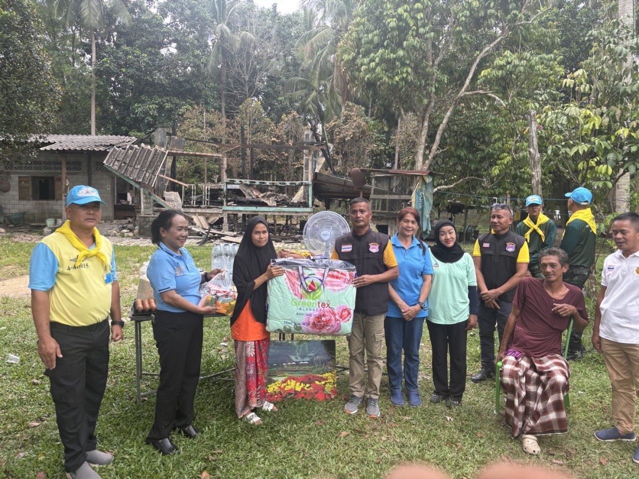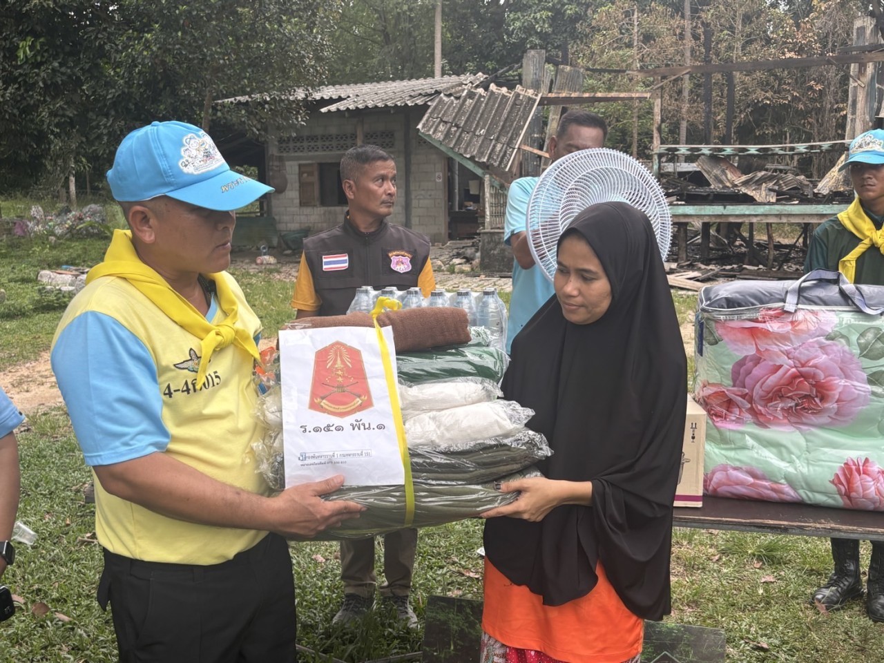 ในการช่วยเหลือครั้งนี้ กองพันทหารราบที่ 1 กรมทหารราบที่ 151 ได้ร่วมมือกับหน่วยงานในพื้นที่ ประกอบด้วย นายกองค์การบริหารส่วนตำบลกะลุวอ, กองร้อยหน่วยเฉพาะกิจตำรวจตระเวนชายแดนจังหวัดนราธิวาสที่ 933, นางประนอม คำจุ่น รองประธานโฆษกชาวบ้านจังหวัดนราธิวาส, ผู้นำชุมชน และอาสาสมัครสาธารณสุขประจำหมู่บ้าน (อสม.) ได้ร่วมกันมอบเครื่องอุปโภคบริโภค เครื่องใช้ไฟฟ้า และสิ่งของจำเป็นในชีวิตประจำวัน เพื่อบรรเทาความเดือดร้อนในเบื้องต้น พร้อมทั้งให้กำลังใจแก่ครอบครัวผู้ประสบเหตุ