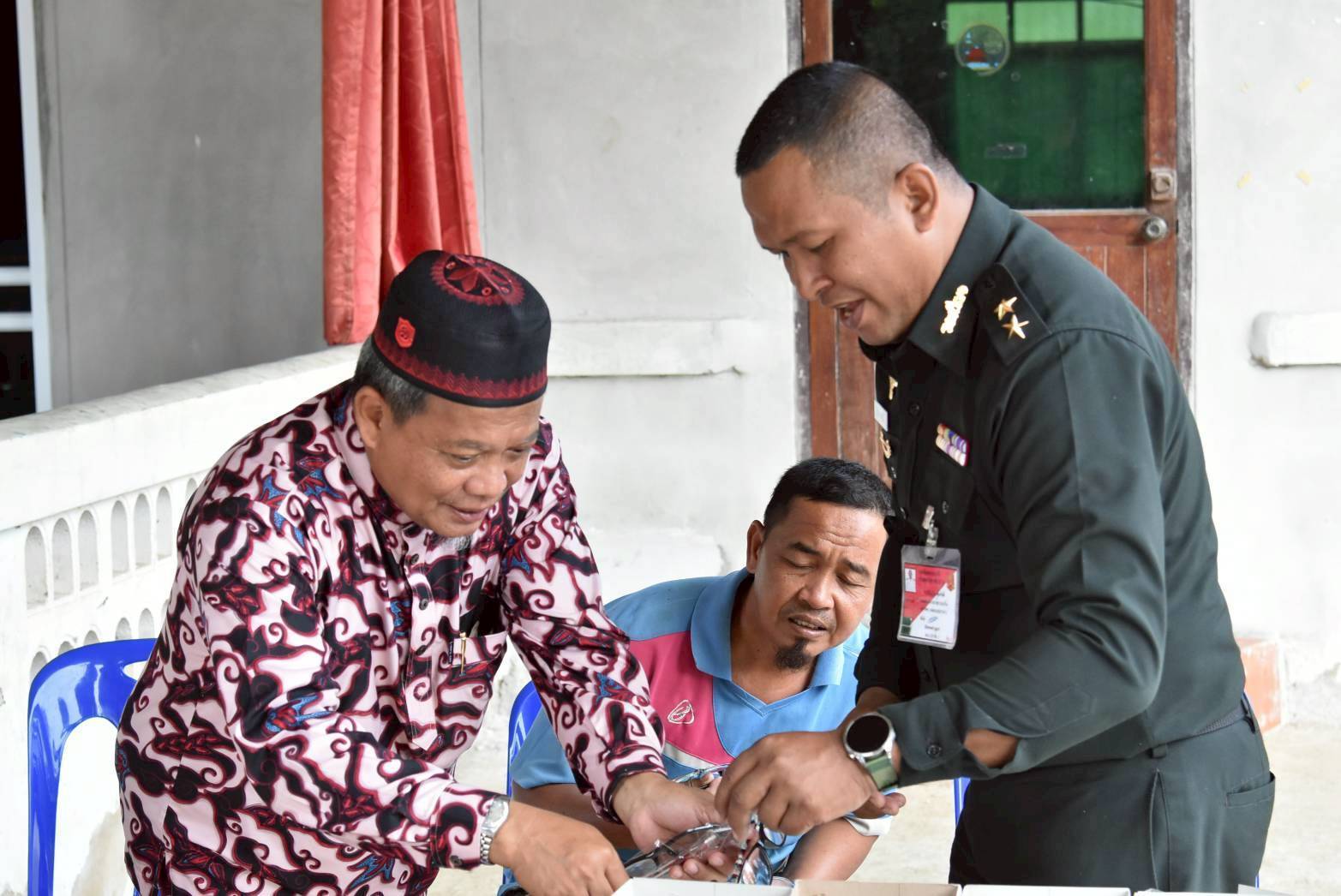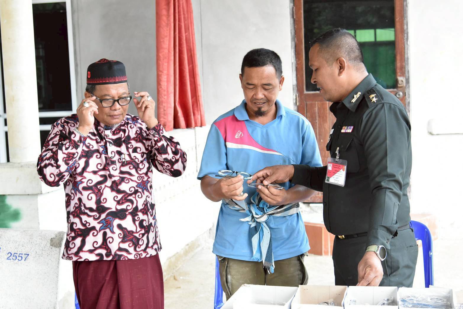 นอกจากนี้ กองพันทหารราบที่ 1 กรมทหารราบที่ 152 ยังได้มอบแว่นสายตาให้กับผู้นำในพื้นที่ เพื่อสนับสนุนการทำงานของผู้นำชุมชนอย่างมีประสิทธิภาพ และแสดงถึงความห่วงใยในสวัสดิภาพของประชาชน ซึ่งชาวบ้านและผู้นำในพื้นที่ได้ให้การต้อนรับอย่างอบอุ่น