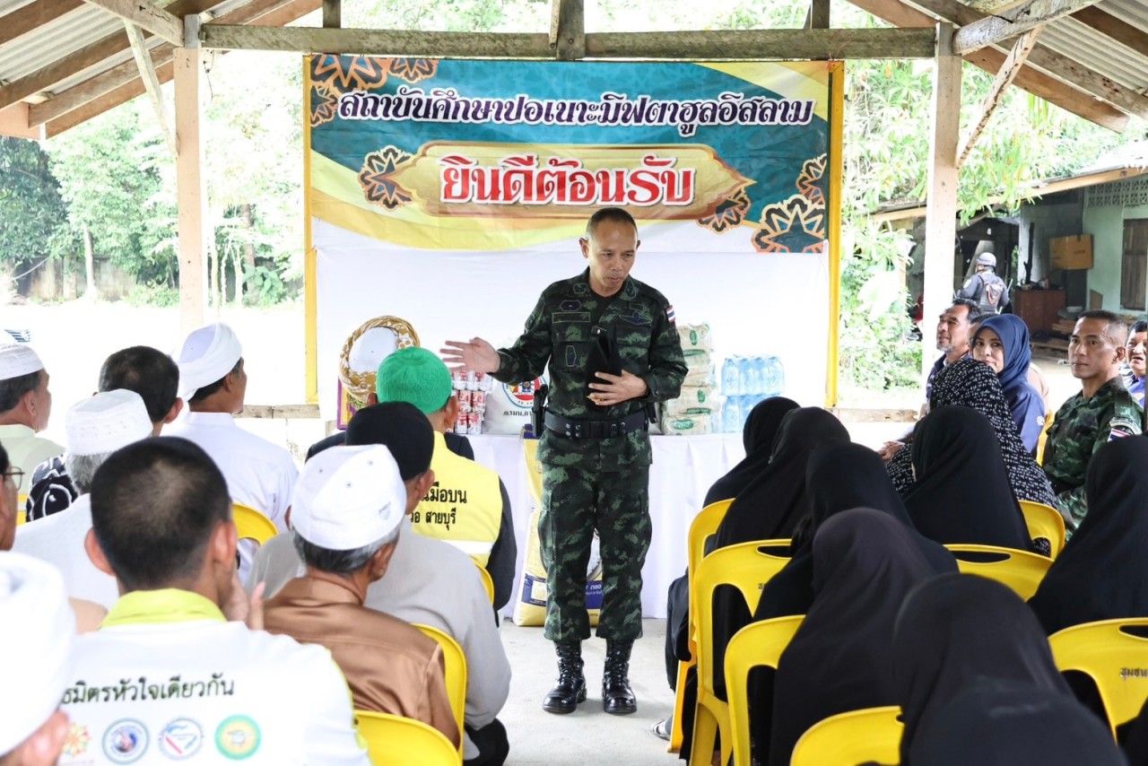 วันนี้ (31 ธันวาคม 2568) พลตรี ชาคริต อุจะรัตน รองแม่ทัพภาคที่ 4 / รองผู้อำนวยการรักษาความมั่นคงภายในภาค 4 ส่วนหน้า ลงพื้นที่เยี่ยมเยียนและให้กำลังใจผู้นำศาสนา รวมถึงพี่น้องประชาชนกลุ่มเปราะบาง เนื่องในวาระต้อนรับเทศกาลปีใหม่ พ.ศ. 2569 ณ สถาบันศึกษาปอเนาะมิฟตาฮูลอิสลาม ตำบลโต๊ะเด็ง อำเภอสุไหงปาดี จังหวัดนราธิวาส โดยมี นายนูรยี บือราเฮง กรรมการอิสลามประจำจังหวัดนราธิวาส พร้อมด้วยพี่น้องประชาชนชาวไทยมุสลิมในพื้นที่ร่วมให้การต้อนรับอย่างอบอุ่น