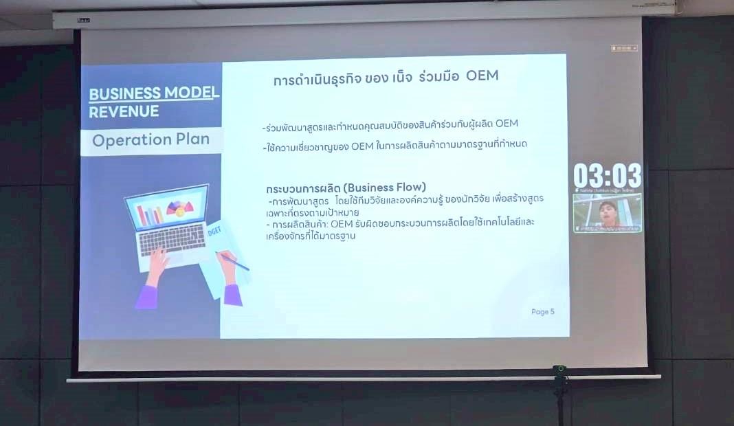 โอกาสนี้ มีผู้ประกอบการจำนวน 6 รายจากศูนย์บ่มเพาะธุรกิจ มรภ.สงขลา ร่วมนำเสนอผลการปฏิบัติงานทั้งในรูปแบบออนไลน์และออนไซต์ โดยได้รับคำแนะนำจากคณะกรรมการผู้ทรงคุณวุฒิในหลากหลายประเด็น เพื่อนำไปปรับปรุงและพัฒนาต่อยอดธุรกิจให้มีศักยภาพและเติบโตอย่างมั่นคงในระยะยาว ซึ่งศูนย์บ่มเพาะธุรกิจ สถาบันวิจัยและพัฒนา มรภ.สงขลา มุ่งมั่นที่จะเป็นกลไกสำคัญในการส่งเสริมและสนับสนุนผู้ประกอบการให้มีความเข้มแข็ง สามารถแข่งขันได้ในตลาด และเป็นส่วนหนึ่งในการขับเคลื่อนเศรษฐกิจของประเทศให้ก้าวหน้าต่อไป