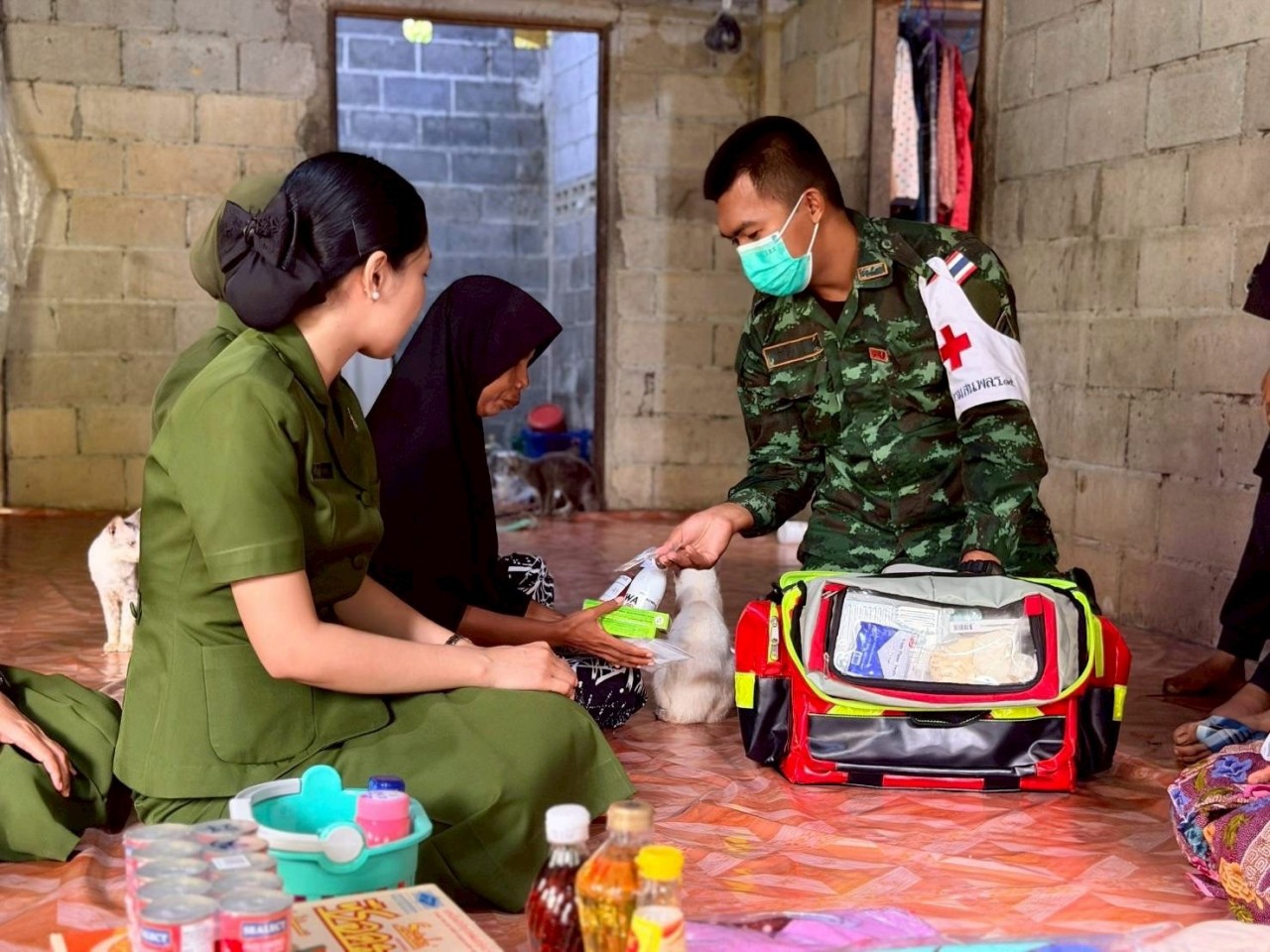 เมื่อวันที่ 30 ตุลาคม 2568 เวลา 13.00 น. กองพันเสนารักษ์ กรมสนับสนุน กองพลทหารราบที่ 15 จัดกำลังพลนายสิบพยาบาล พร้อมกระเป๋ายาและเวชภัณฑ์ ลงพื้นที่บูรณาการร่วมกับหน่วย กองพันทหารม้าที่ 31 กองพลทหารราบที่ 15 และองค์การบริหารส่วนตำบลทุ่งพอ อำเภอสะบ้าย้อย จังหวัดสงขลา เพื่อเยี่ยมเยียนและให้การดูแลครอบครัวกลุ่มเปราะบางในพื้นที่รับผิดชอบ โดยได้เยี่ยมครอบครัวของ นางสาวรอบีเย๊าะ และนายบากา บ้านเลขที่หมู่ที่ 8 ตำบลทุ่งพอ อำเภอสะบ้าย้อย จังหวัดสงขลา พร้อมทั้งได้ดำเนินการตรวจวัดสัญญาณชีพ จ่ายยาสามัญประจำบ้าน และให้คำแนะนำการใช้ยาอย่างถูกต้องตามหลักการทางการแพทย์ เพื่อเสริมสร้างความรู้ความเข้าใจแก่ประชาชนในการดูแลสุขภาพเบื้องต้นด้วยตนเอง