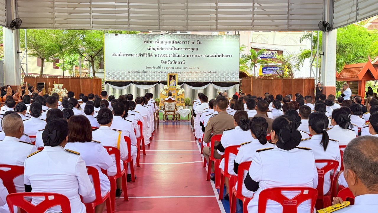 เมื่อวันที่ 30 ตุลาคม 2568 เวลา 17.00 น.จังหวัดปัตตานี จัดพิธีบำเพ็ญกุศลสัตตมวาร (ครบ 7 วัน) ณ วัดตานีนรสโมสร พระอารามหลวง อำเภอเมือง จังหวัดปัตตานี เพื่ออุทิศถวายเป็นพระราชกุศลแด่ สมเด็จพระนางเจ้าสิริกิติ์ พระบรมราชินีนาถ พระบรมราชชนนีพันปีหลวง โดยมี นายสนั่น สนธิเมือง รองผู้ว่าราชการจังหวัดปัตตานี เป็นประธานในพิธี พร้อมด้วย พันเอก สฐิรพงษ์ อาจหาญ เสนาธิการกองพลทหารราบที่ 15 , กำลังพลจากมณฑลทหารบกที่ 46 , หัวหน้าส่วนราชการ , หน่วยงานภาครัฐ , ภาคเอกชน , ข้าราชการ ทหาร ตำรวจ และประชาชนในพื้นที่เข้าร่วมพิธีบำเพ็ญกุศลสัตตมวารในครั้งนี้อย่างพร้อมเพรียง