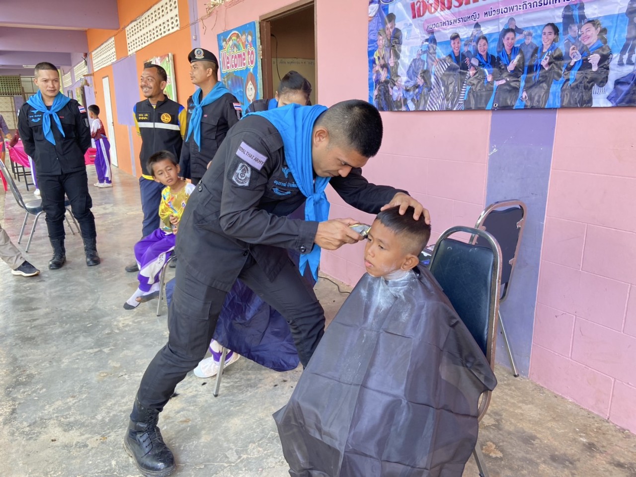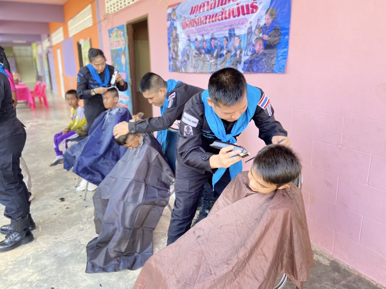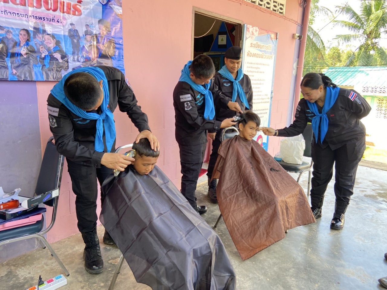 “เกศาสานใจ เชื่อมรักสานสัมพันธ์” ทหารพราน 41 บริการตัดผมนักเรียน พร้อมทั้งให้ความรู้เรื่องโทษและพิษภัยยาเสพติด