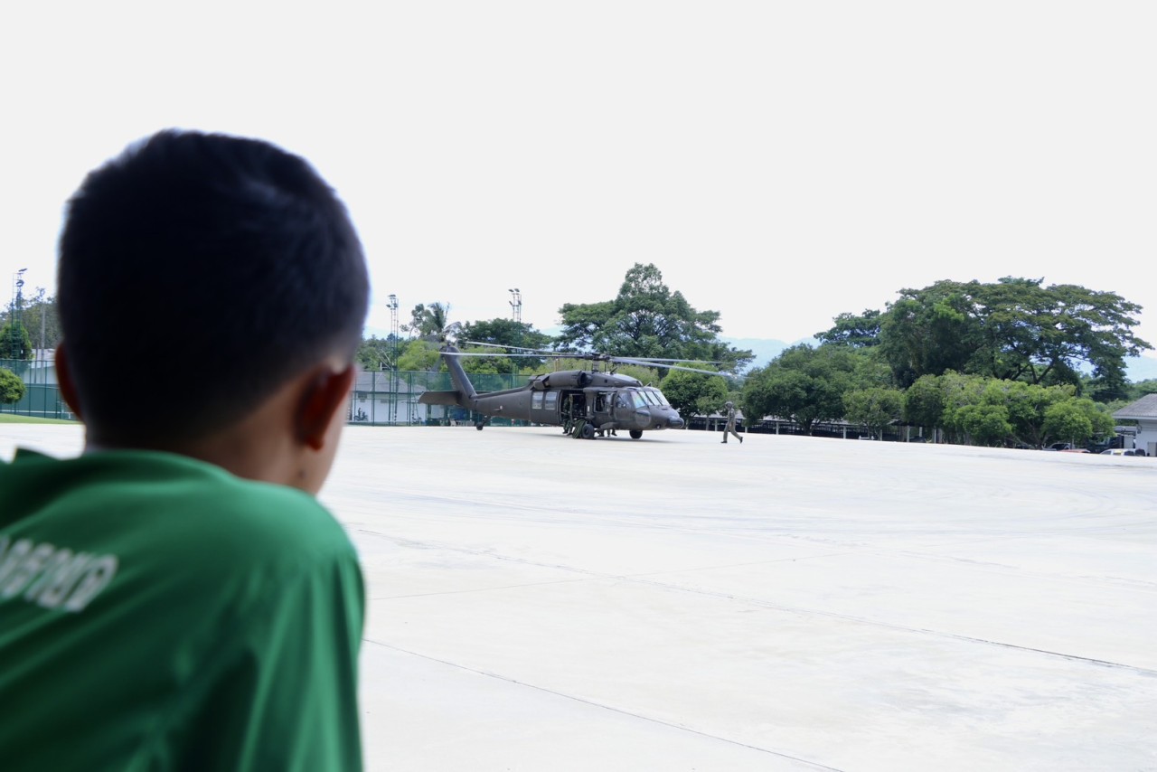 ด้าน เด็กหญิง ฟัรฮานา สาอิ นักเรียนชั้นประถมศึกษาปีที่ 3 โรงเรียนบ้านปาแตรายอ ตำบลเกะรอ อำเภอรามัน จังหวัดยะลา กล่าวว่า “วันนี้รู้สึกดีใจ และตื่นเต้นที่ได้มาดูเฮลิคอปเตอร์ และพี่ๆ ทหารได้สอนเรื่องเฮลิคอปเตอร์ ขอบคุณพี่ๆ ทุกคนที่ให้พวกหนูเข้ามาวันนี้ ครั้งต่อไปก็อยากมาอีก ดีใจมากๆ ค่ะ”