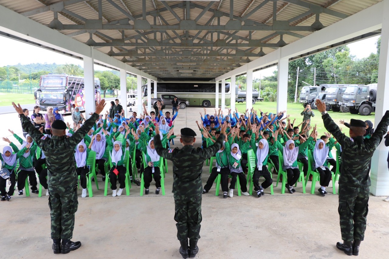 วันนี้ (8 ตุลาคม 2568) เวลา 13.30 น. ณ แหล่งรวมรถ กรมทหารราบที่ 152 ค่ายสิรินธร ตำบลเขาตูม อำเภอยะรัง จังหวัดปัตตานี พันเอก ธรรมชาติ ชูเชิด รองผู้อำนวยการสำนักมวลชนและกิจการพิเศษ กองอำนวยการรักษาความมั่นคงภายในภาค 4 ส่วนหน้า เป็นประธานให้การต้อนรับคณะครูและนักเรียนจากโรงเรียนบ้านปาแตรายอ ตำบลเกะรอ อำเภอรามัน จังหวัดยะลา ซึ่งเดินทางเข้าชมอากาศยานกองทัพบก โดยคณะประกอบด้วย นักเรียนระดับชั้นประถมศึกษาปีที่ 3–4 จำนวน 79 คน พร้อมคณะครูผู้ควบคุม เพื่อเปิดโอกาสให้นักเรียนได้เรียนรู้เกี่ยวกับการทำงานของกำลังพลและเทคโนโลยีทางทหารของกองทัพบก สร้างแรงบันดาลใจในการศึกษาและปลูกฝังจิตสำนึกด้านความเสียสละเพื่อชาติ